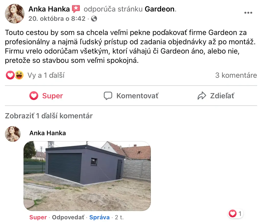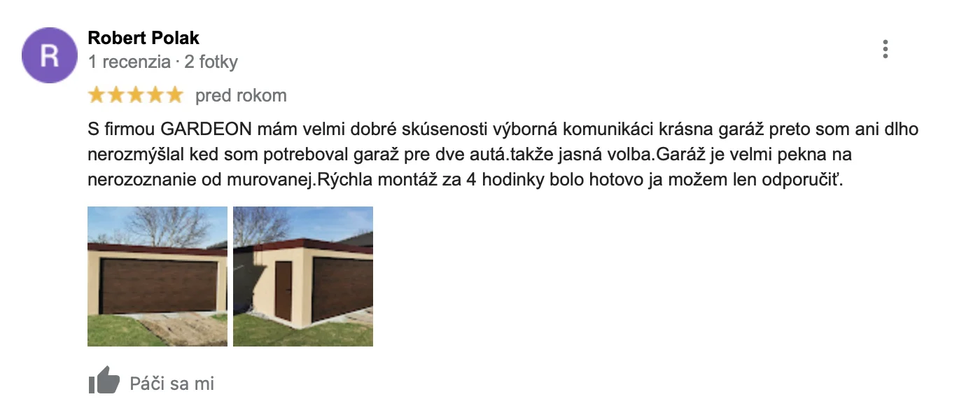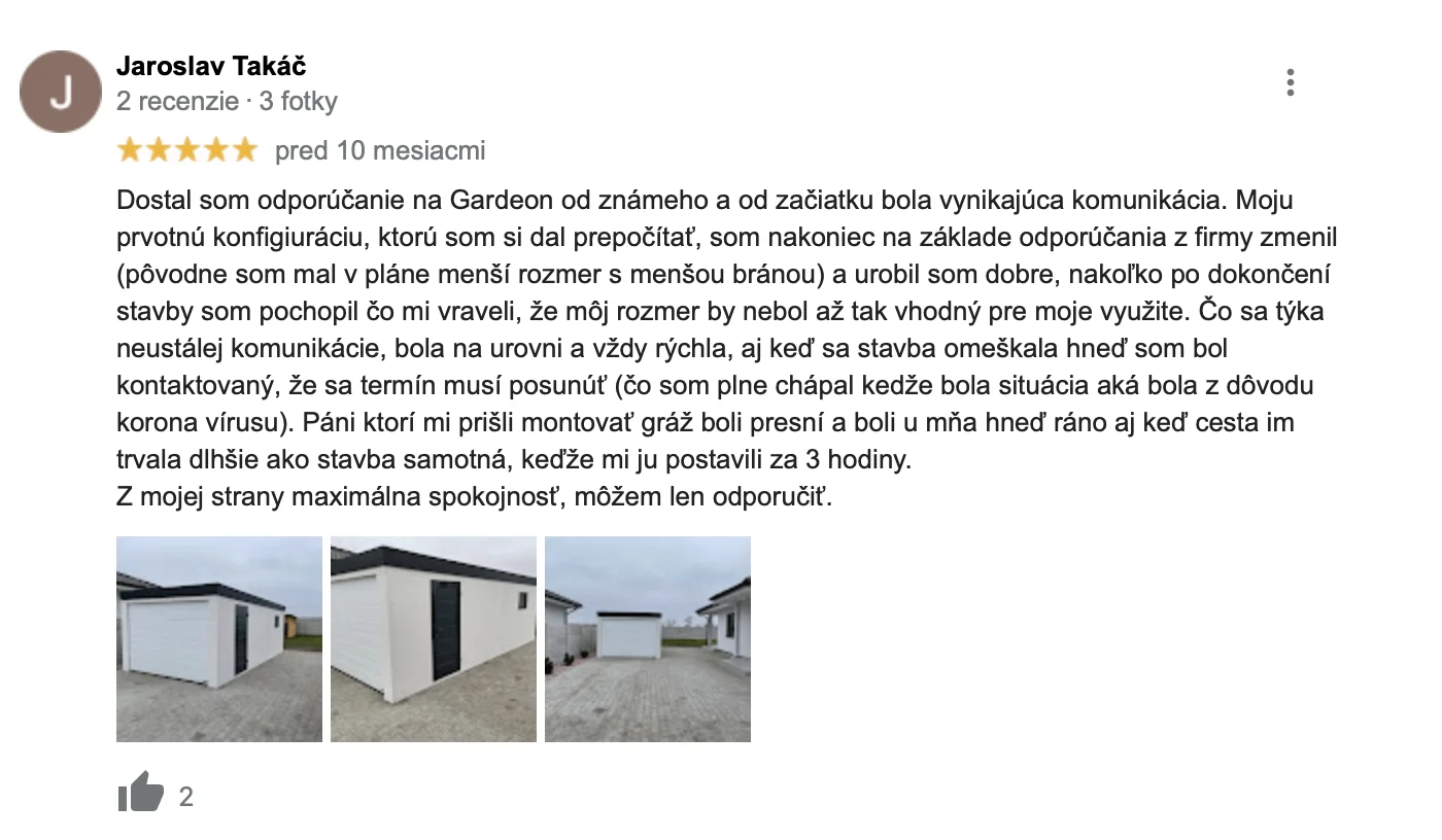 Máme tu pre vás tie najvýstižnejšie hodnotenia našich zákazníkov. Hoci sme hrdí na všetky postavené garáže, práve spokojnosť ich majiteľov je našou naozajstnou vizitkou. Ako sme teda naplnili ich očakávania?