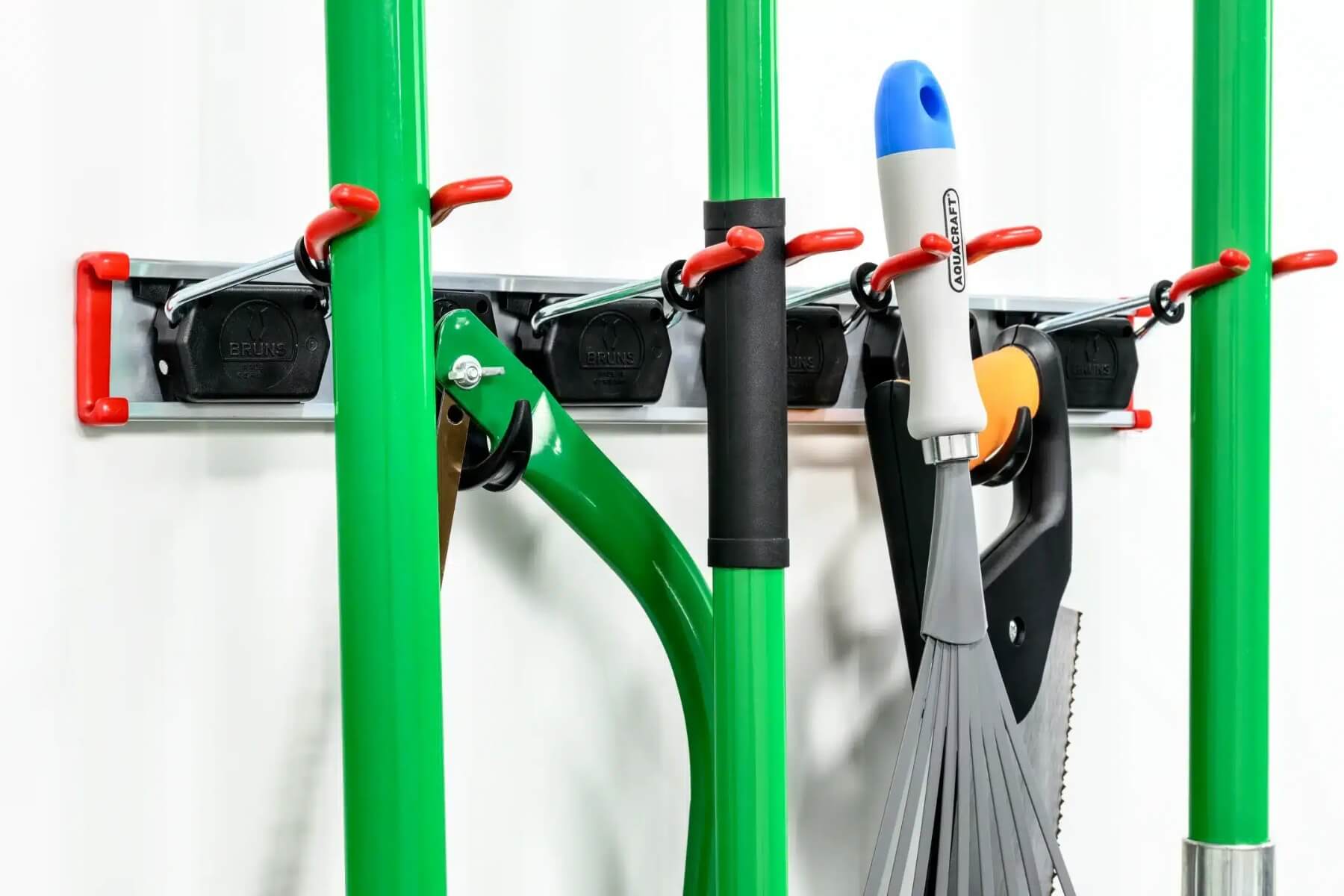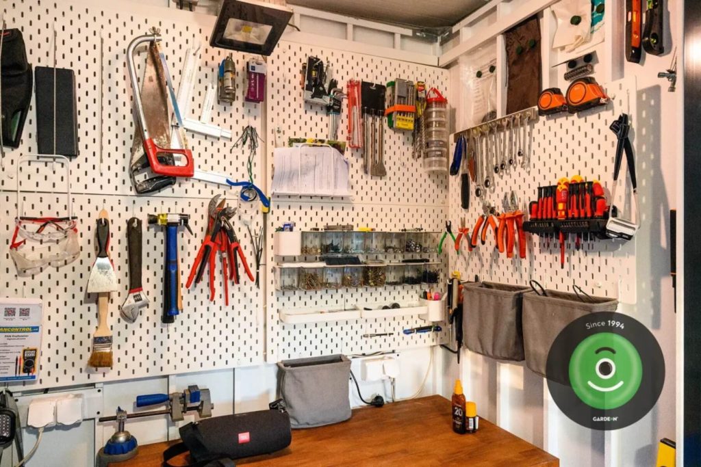 Základom je pevný pracovný stôl, poličky alebo lišty s háčikmi, na ktoré zavesíte najpoužívanejšie náradie. Väčšie náradie, ale aj záhradné pomôcky, môžete mať prehľadne zavesené na stene záhradného domčeka v praktických závesných systémoch. V garáži alebo záhradnom domčeku si môžete vyhradiť aj samostatnú skrinku na farby a chemikálie, aby ste mali nebezpečné látky pod kontrolou.