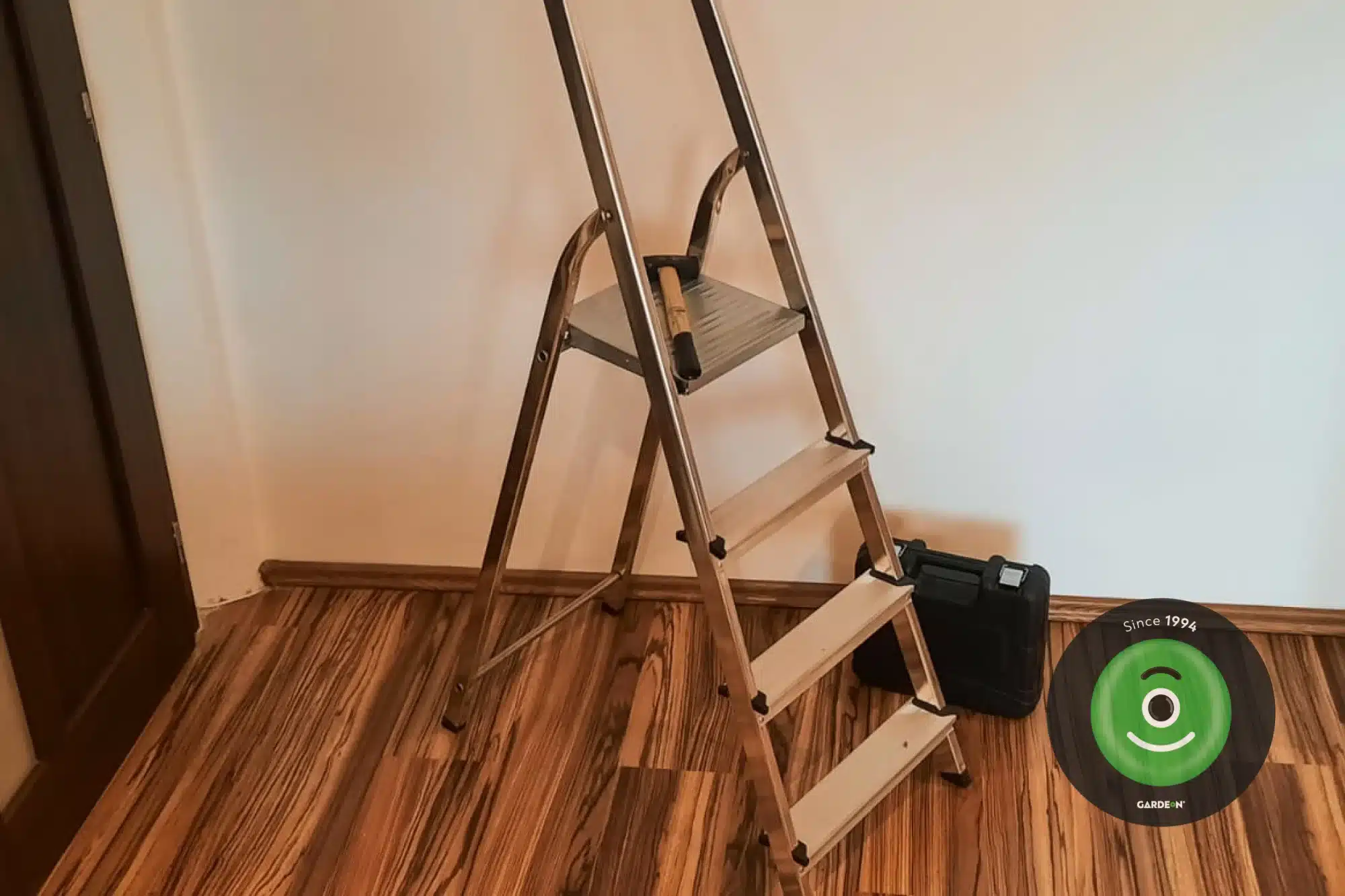 Vyberte si rebrík s madlom pre väčšiu stabilitu a uistite sa, že udrží vašu váhu a nástroje, ktoré budete potrebovať.