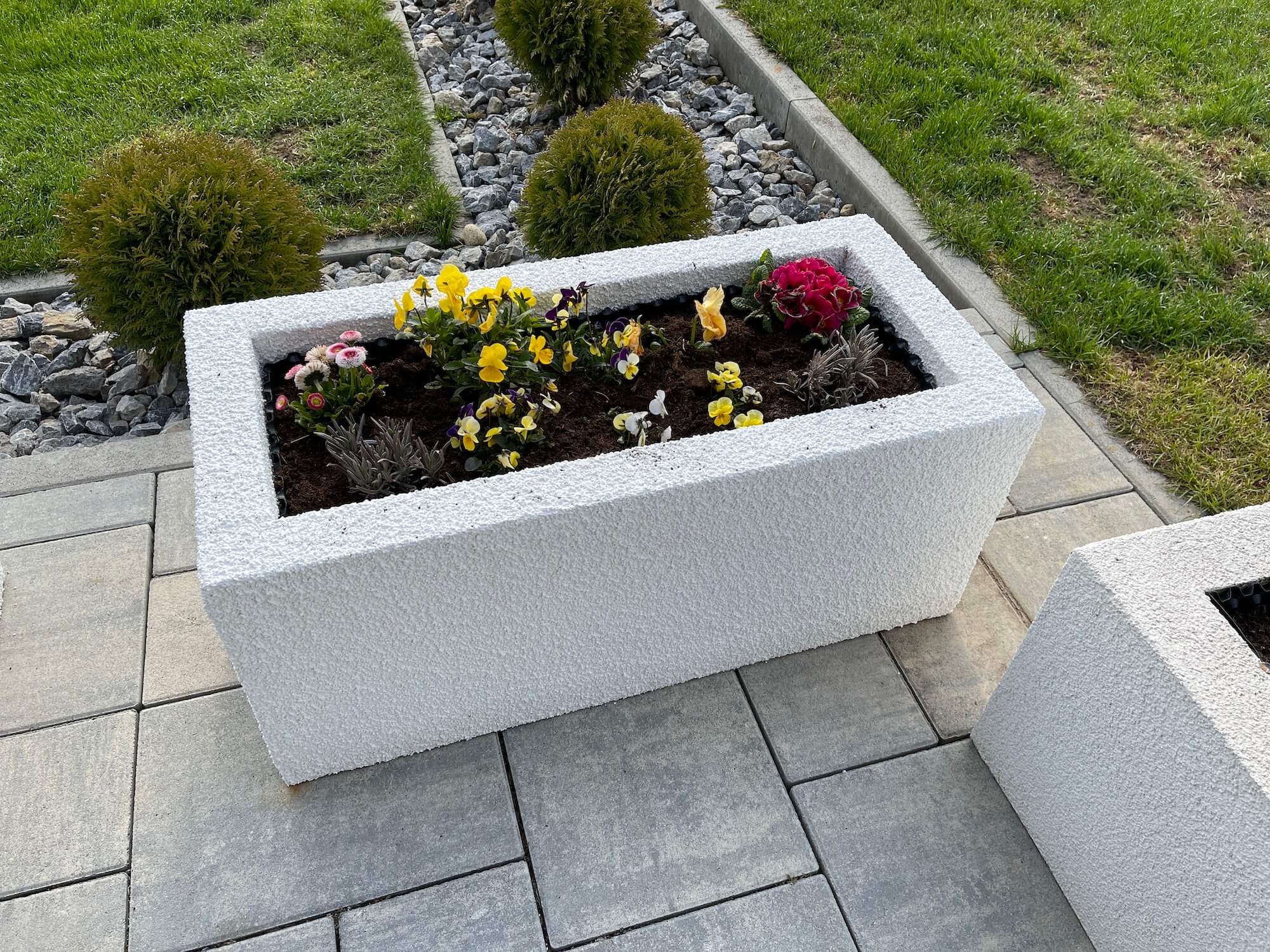 Betónové tvárnice sú odolné a ak ich zvonka obložíte napríklad kameňom, budú vyzerať pekne, no takýto múrik je vo výsledku príliš široký. A sedieť na múriku a vykrúcať sa pri práci do boku rozhodne nie je pohodlné.