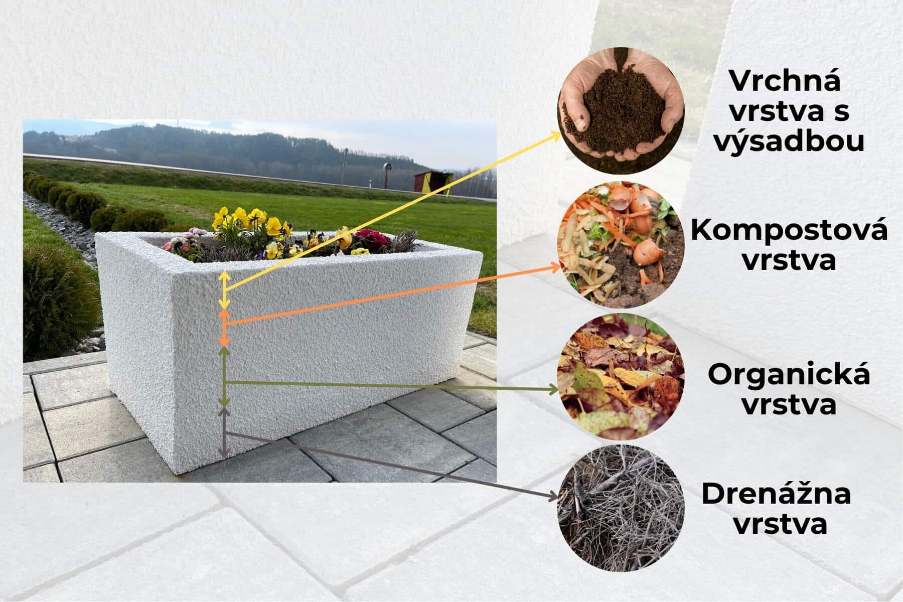 Správna výplň vyvýšeného záhona ja tvorená 4 vrstvami, z ktorých každá má svoju funkciu: