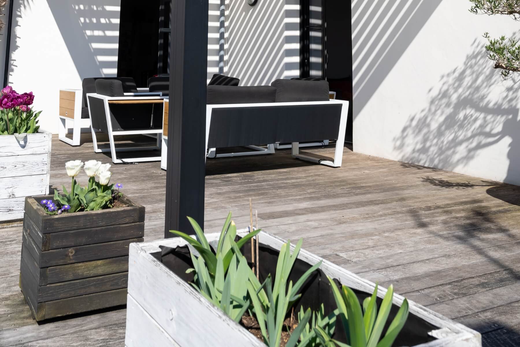 Pergola poskytuje ochranu pred nepriaznivými poveternostnými podmienkami, ako sú prudký dážď alebo intenzívne slnečné žiarenie. Zároveň umožňuje efektívne využitie priestoru – môžete pod ňu umiestniť nielen bylinky, ale aj popínavé rastliny, ako sú vinič alebo kvitnúce popínavky, ktoré celý priestor ešte viac oživia.
