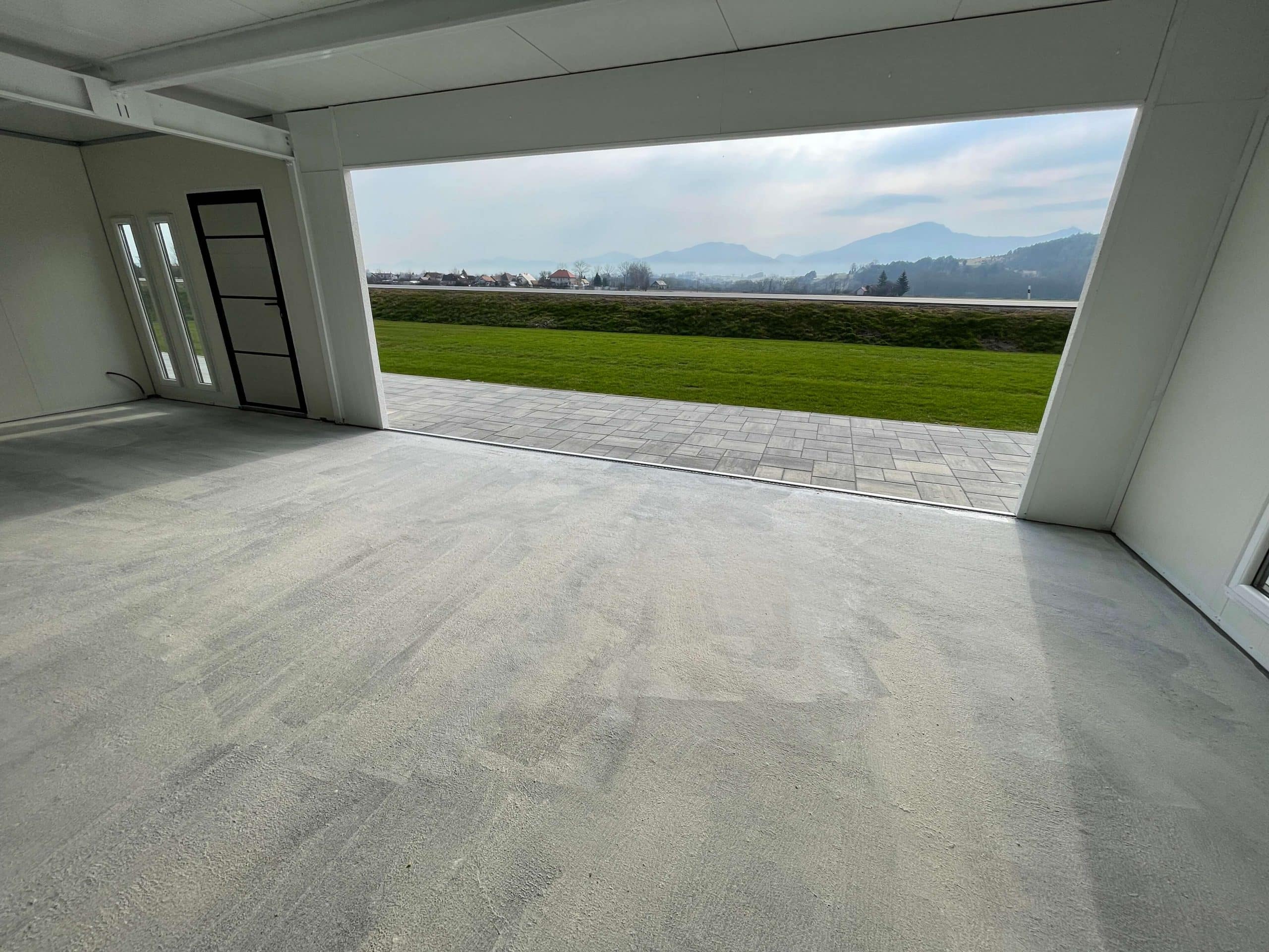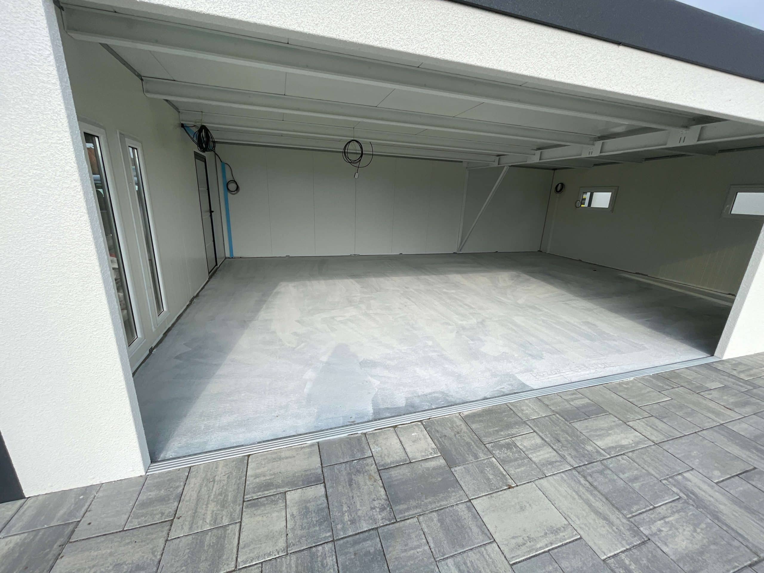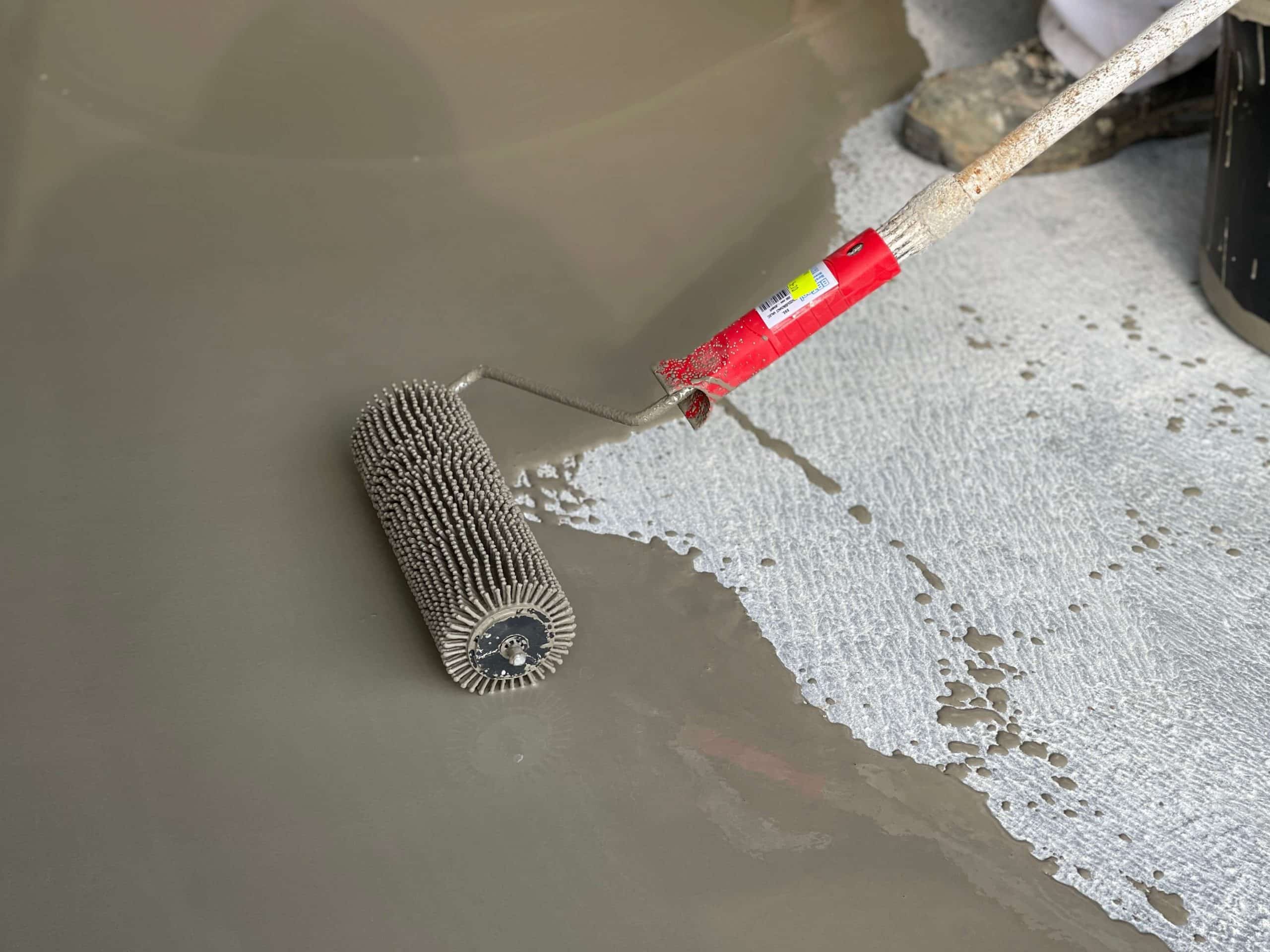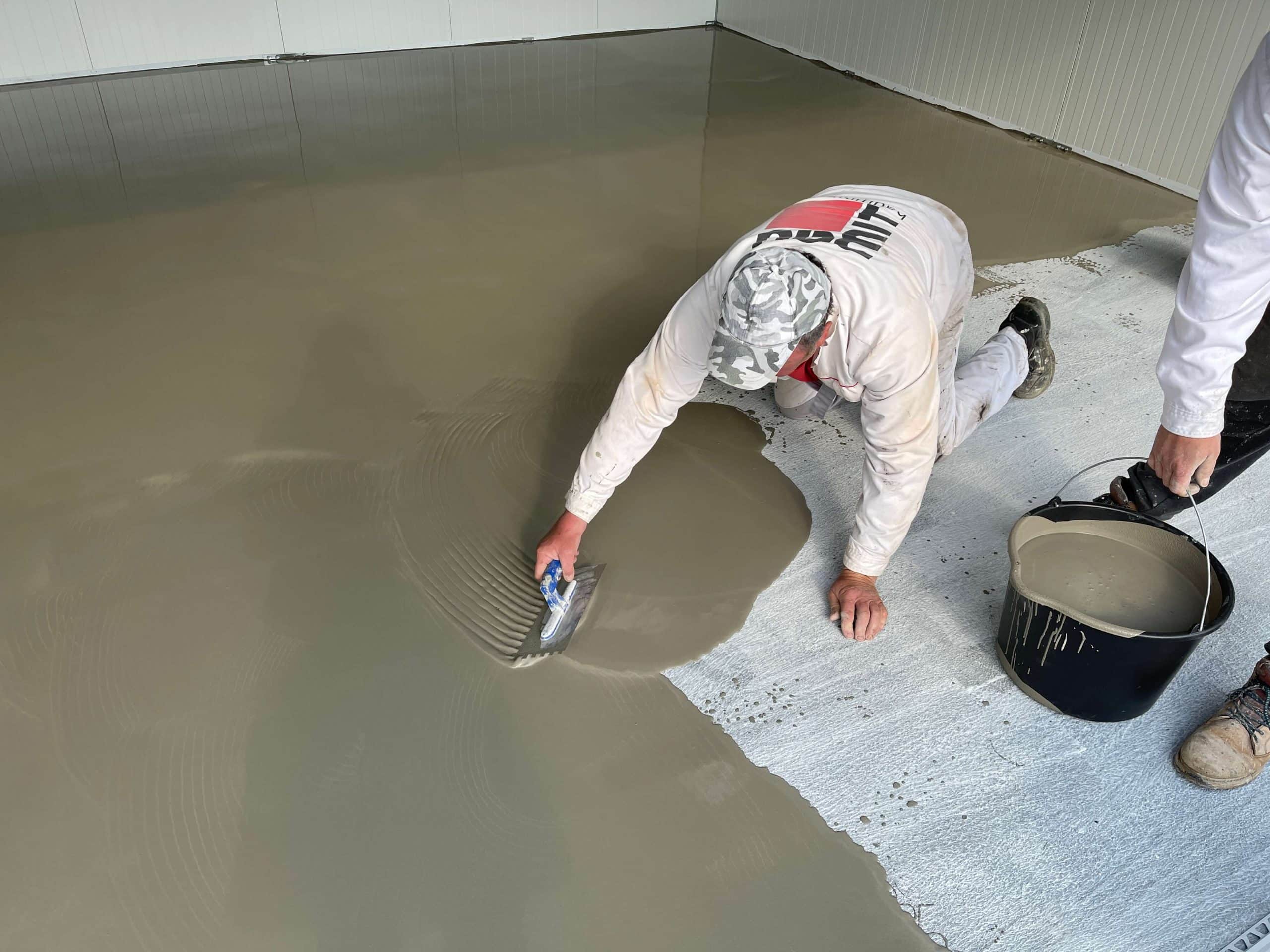 Po zaizolovaní betónu môžete naniesť samonivelačný poter vhodný do exteriéru. Ten vytvorí v garáži perfektný podklad pod dlažbu alebo liatu epoxidovú podlahu. Najskôr je však potrebné aplikovať adhézny mostík (stačí v jednej vrstve), čo je vysoko priľnavý náter ktorý zabezpečí, aby sa vrstva hydroizolácie a cementová nivelačná stierka spojili.