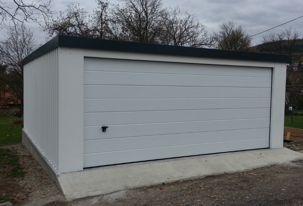 Oceľová garáž s omietkou