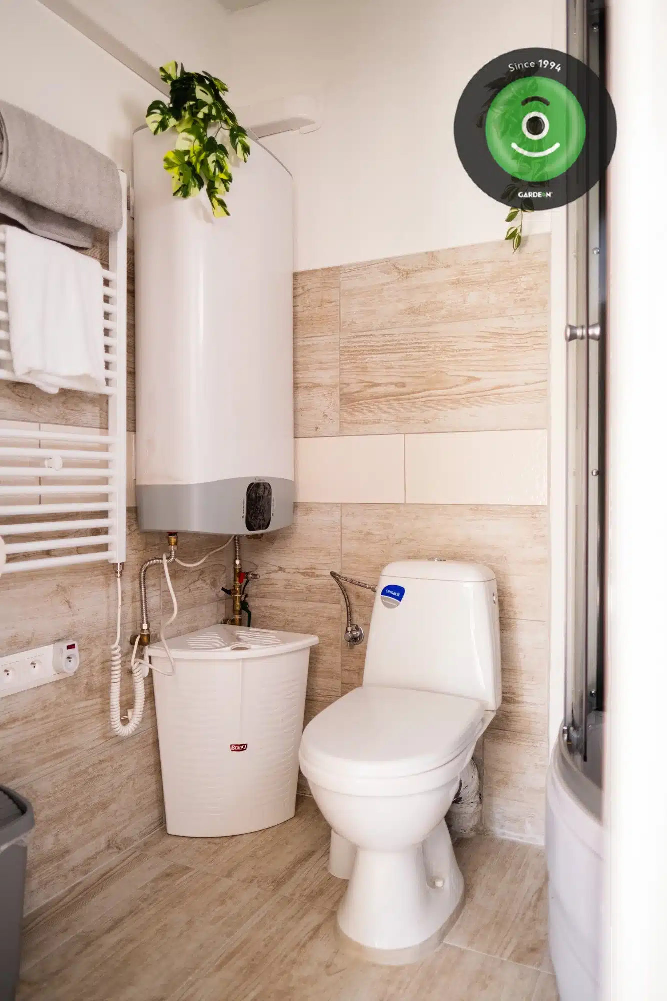 A keď už sme pri konštrukcii samotnej záhradnej stavby – pri konfigurácii záhradného domčeka, ktorý plánujete využívať ako letnú kúpeľňu, sa určite oplatí zvoliť nielen zateplenú strechu, ale aj izolované steny. Tie totiž chránia vnútorný priestor pred prehrievaním a vo vašej záhradnej kúpeľni tak bude príjemne aj v letných horúčavách. Navyše, v takomto záhradnom domčeku potom nemusí byť len čisto letná kúpeľňa. Práve montovaná stavba GARDEON s izolovanými stenami a strechou, ktoré účinne bránia úniku tepla, môže poslúžiť aj v chladnejších obdobiach roka – napríklad ako miesto na relax pri spomínanom saunovaní. V tomto prípade však určite pamätajte aj na vykurovanie, aby ste si pri odpočívaní medzi jednotlivými vstupmi do sauny vedeli vytvoriť príjemný tepelný komfort.