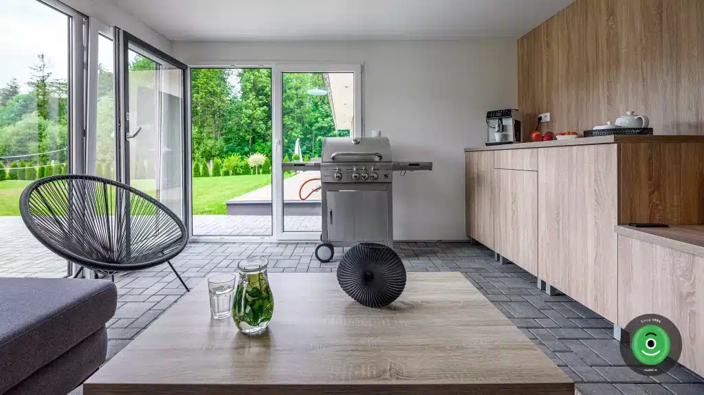 Dispozícia domčeka – ak ste sa rozhodli vytvoriť letnú kuchyňu v domčeku, ktorý nebol kupovaný za týmto účelom, zvážte, či má vhodné dispozičné riešenie. Poličky, šuflíky, dočasná kuchynská linka. Dvere umiestnené tak, aby vám pri vynášaní mís a tanierov nič nezavadzalo.