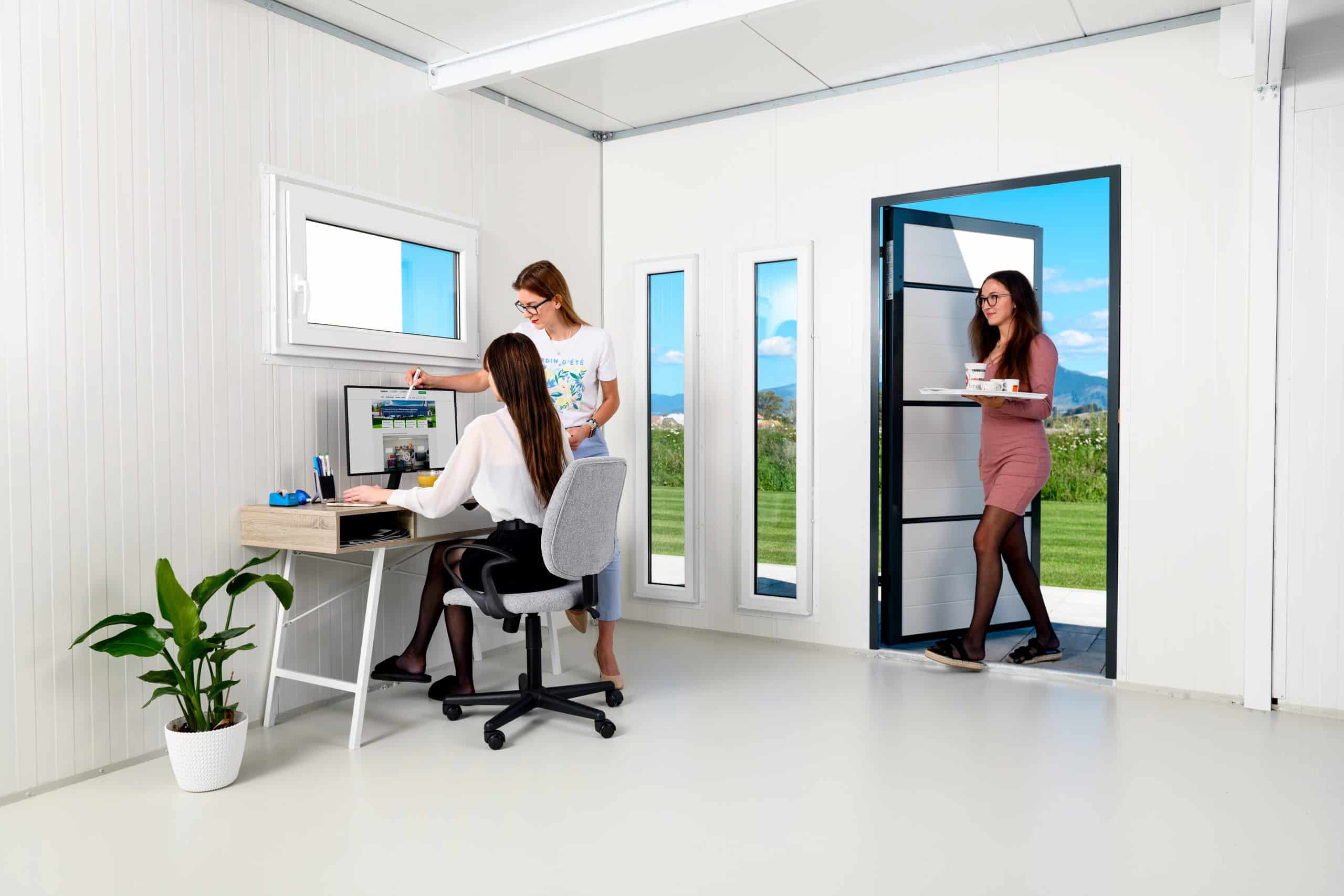 Inšpirovaný Marošovou montovanou garážou Rasťo trochu surfoval na internete a na stránke Gardeonu našiel presne to, čo hľadal – fotografie interiéru záhradného domčeka s plastovými oknami a stenami aj stropom zo zateplených panelov. A hlavne – so stolom a počítačom. Vďaka tomuto kancelárskemu nádychu sa v Rasťovej hlave zrodila myšlienka, ako urobiť Garáž.tv v garáži. A to rýchlo, zo skladačky pripravenej presne na mieru. Vybral sa teda na „špionáž“ do showroomu v Turčianskom Ďure, kde si vo výstavnom priestore vyskúšal aj nejaké to natáčanie, a bolo rozhodnuté. „V čase natáčania bolo vonku naozaj horúco, ale v zateplenej garáži, ktorú sme večer otvorili, bolo príjemne chladno. Takže moderné sendvičové panely naozaj fungujú,“ konštatuje známy recenzent áut jeden z výsledkov svojej „špiónskej misie“.