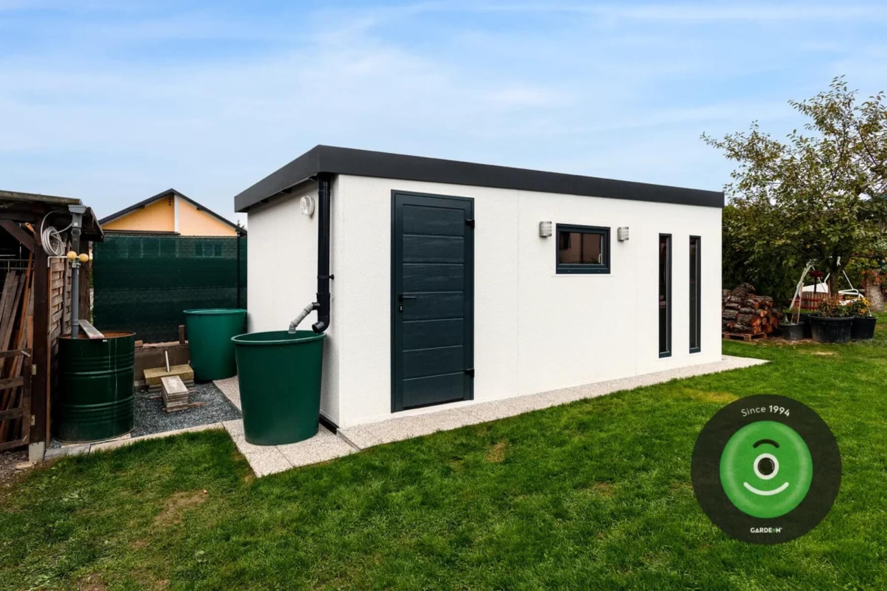 Gardeon tip: Pokiaľ máte záhradný domček alebo montovanú garáž, môžete rozvody hadíc alebo nádrže na vodu umiestniť tak, aby boli esteticky skryté a zároveň ľahko prístupné.