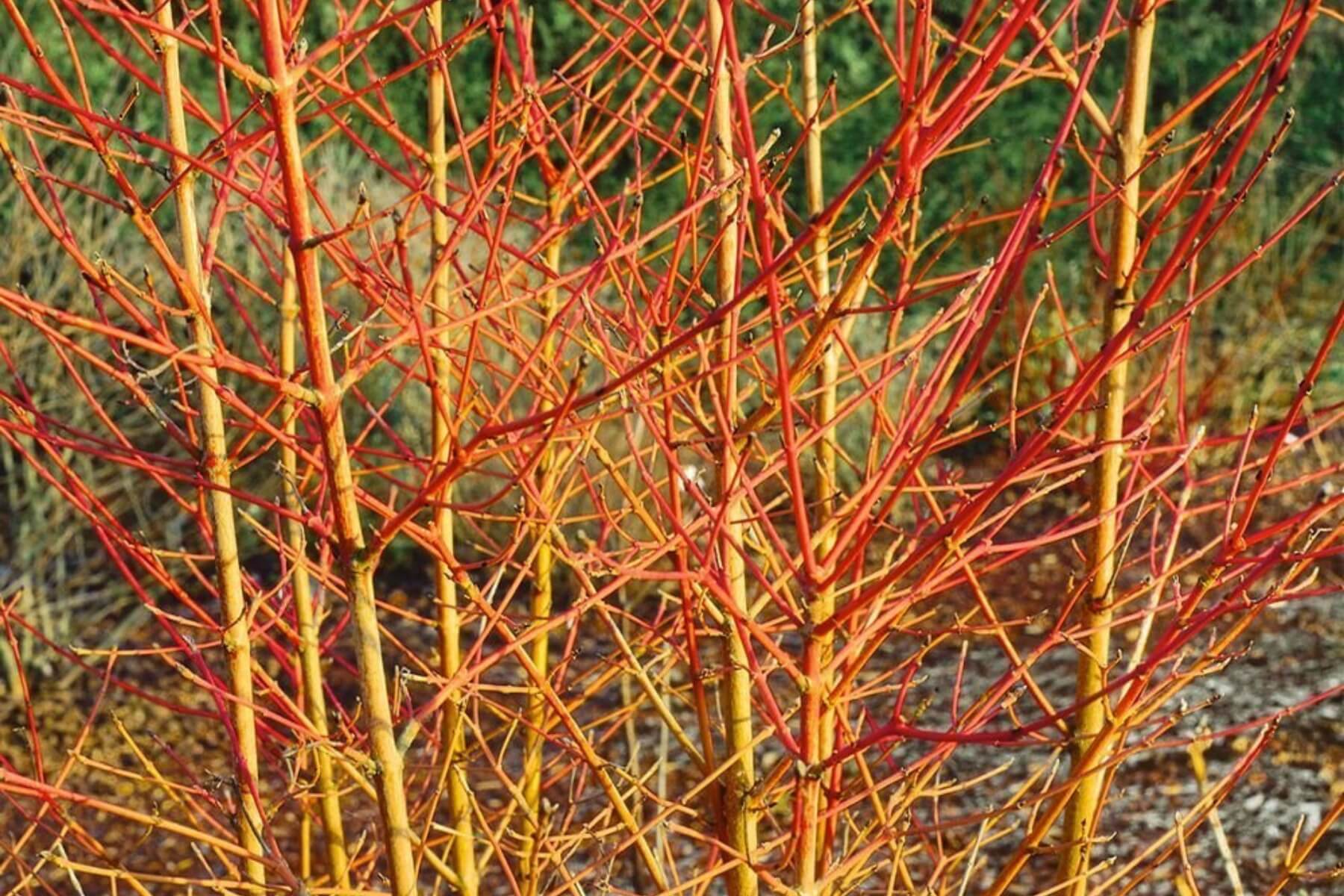 Chceli by ste v zime oživiť záhradu žiarivými farbami? Po opadaní listov krásne vynikne jasný vínovo-červený odtieň kôry mladých výhonov drieňa bieleho (Cornus alba).