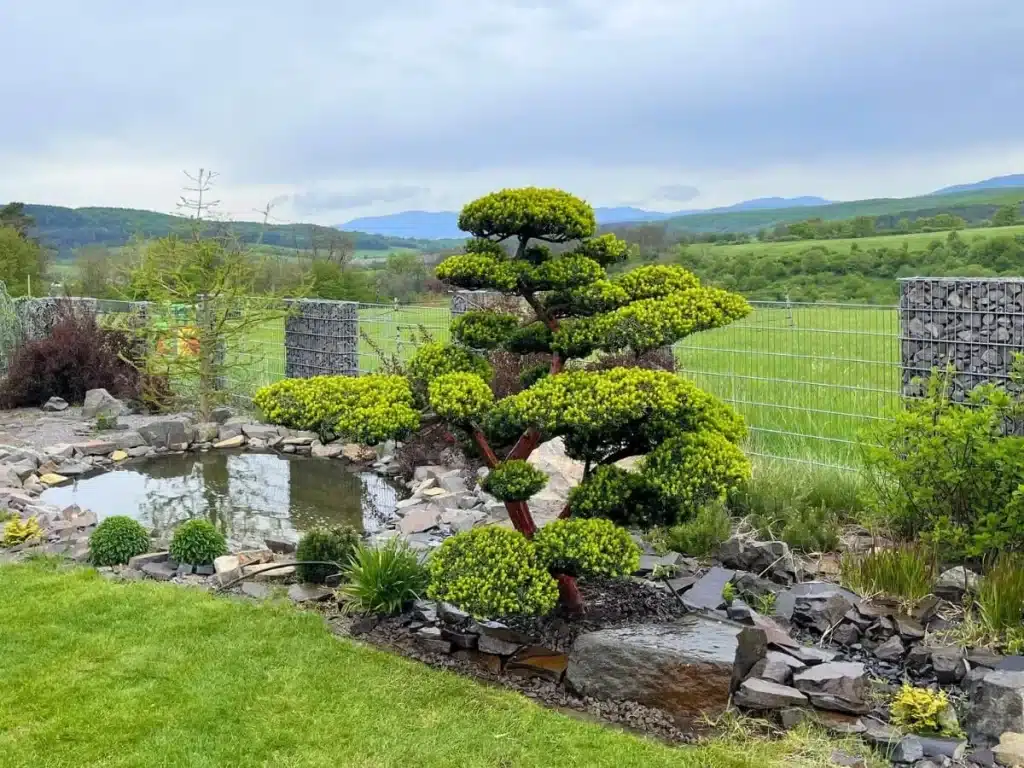 • Výhľad: Umiestnite stavby tak, aby z nich bol pekný výhľad na záhradu a jej kľúčové prvky, ako sú vodné plochy, kamene a rastliny.