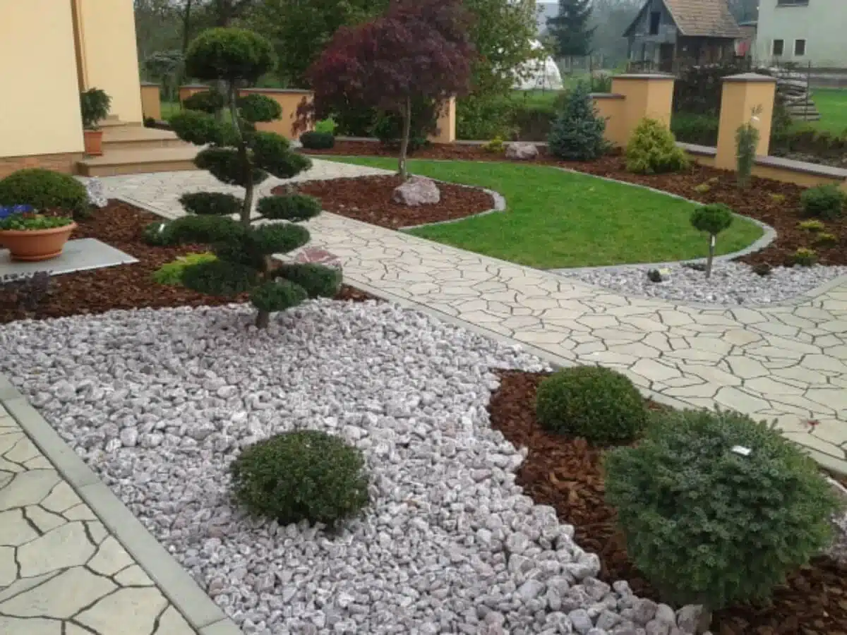 Kombinácia kamenných prvkov s drevenými stavbami v záhrade vytvára harmonický a prirodzený vzhľad. Drevené prvky, ako sú altánky, pergoly či záhradné domčeky, krásne kontrastujú s textúrou kameňa a štrku, čím dodávajú záhrade útulnosť a teplo. Šlapáky z kameňa zase prevedú záhradou a vytvoria príjemné prepojenie medzi jednotlivými zónami, zatiaľ čo štrk poslúži ako dekoratívny prvok a zároveň zabráni rastu buriny.