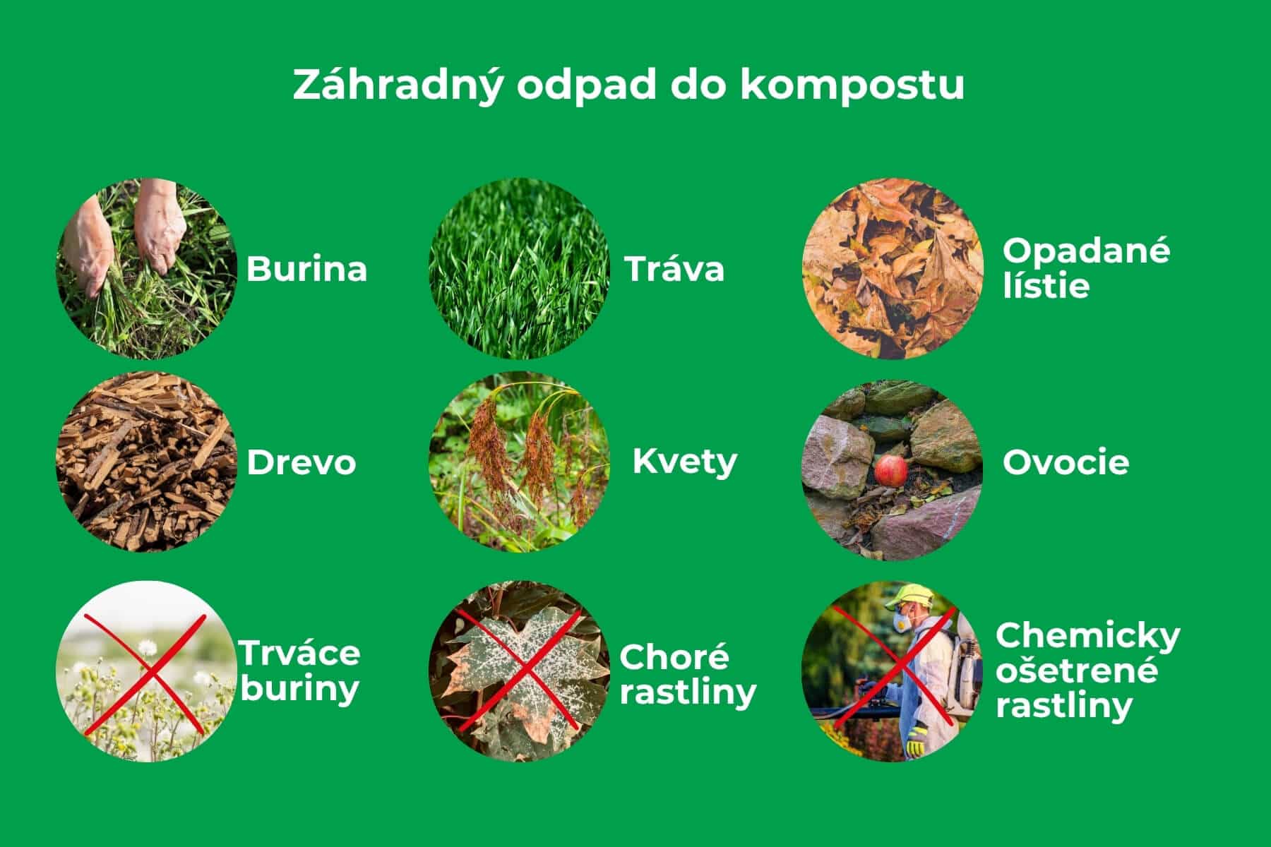 Do kompostu napríklad nepatria trváce buriny s podzemkami a semenami, ani choré či chemicky ošetrené rastliny. Tie je najlepšie vyviezť do zberného dvora. Na kompostovisko potrebujete aj vhodné miesto. Ak nemáte v záhrade priestoru nazvyš, môžete využiť kompaktný plastový kompostér, ktorý ho veľa nezaberie.