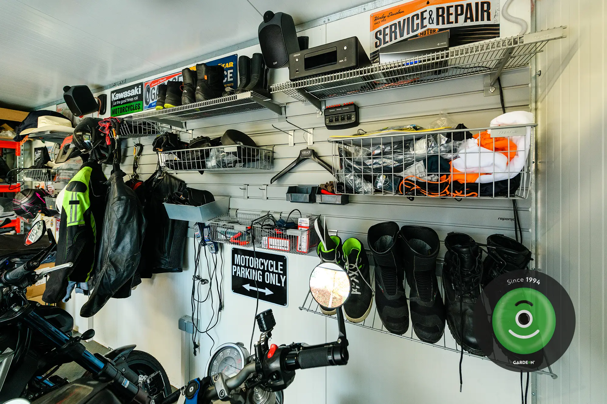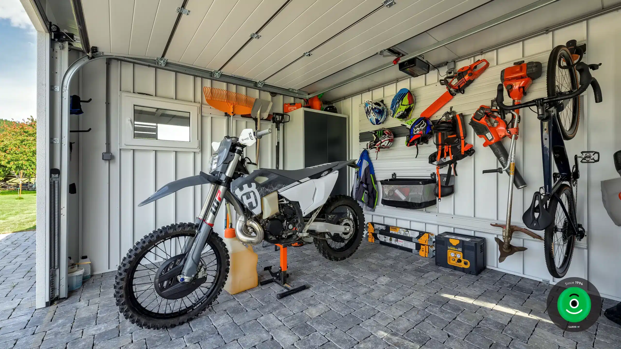 Miesto, kde môžete bezpečne odstaviť motorku, skúter či bicykel, sa dá vytvoriť aj v dostatočne priestrannej garáži na auto, no nie je to jediná praktická možnosť. Váš dvojkolesový tátoš môže mať aj vlastnú parádnu garáž, ktorej súčasťou bude napríklad i malá dielňa alebo miesto na uloženie potrebnej výbavy, vrátane prilby a špeciálneho oblečenia.