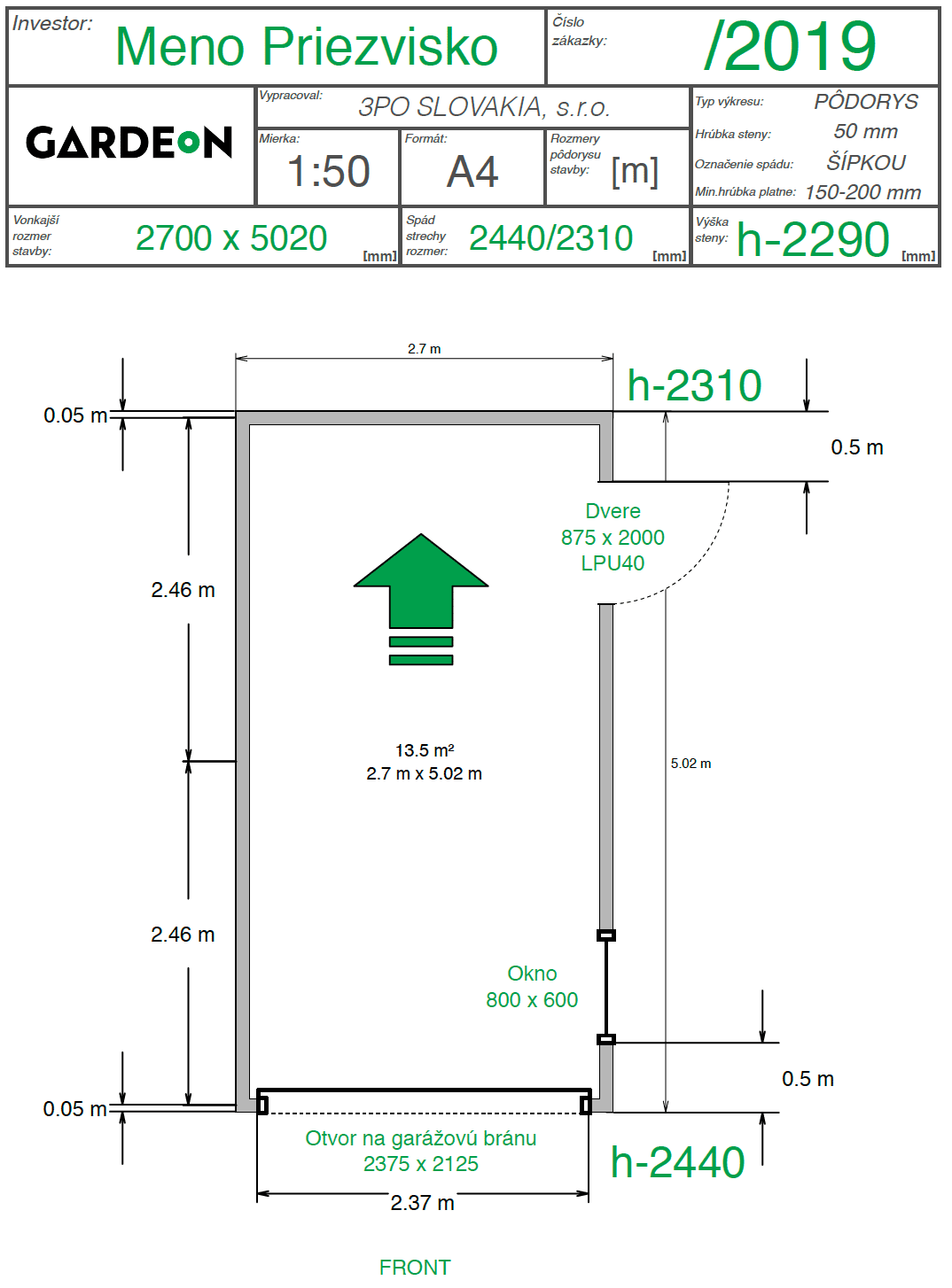 Ak bude garáž slúžiť len na parkovanie menšieho auta a nepotrebujete odkladací priestor navyše, postačí vám aj najmenší štandardný rozmer 2700 x 5020mm.