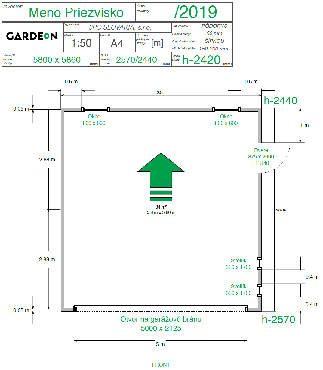 V tom prípade je pre vás najvhodnejší rozmer dvojgaráže 5800 x 5860mm.