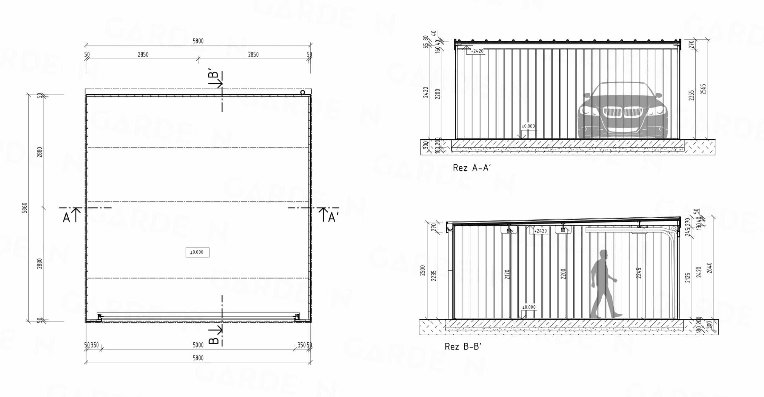 Pohľad na garáž pre dve autá o rozmere 5800 x 5860 mm