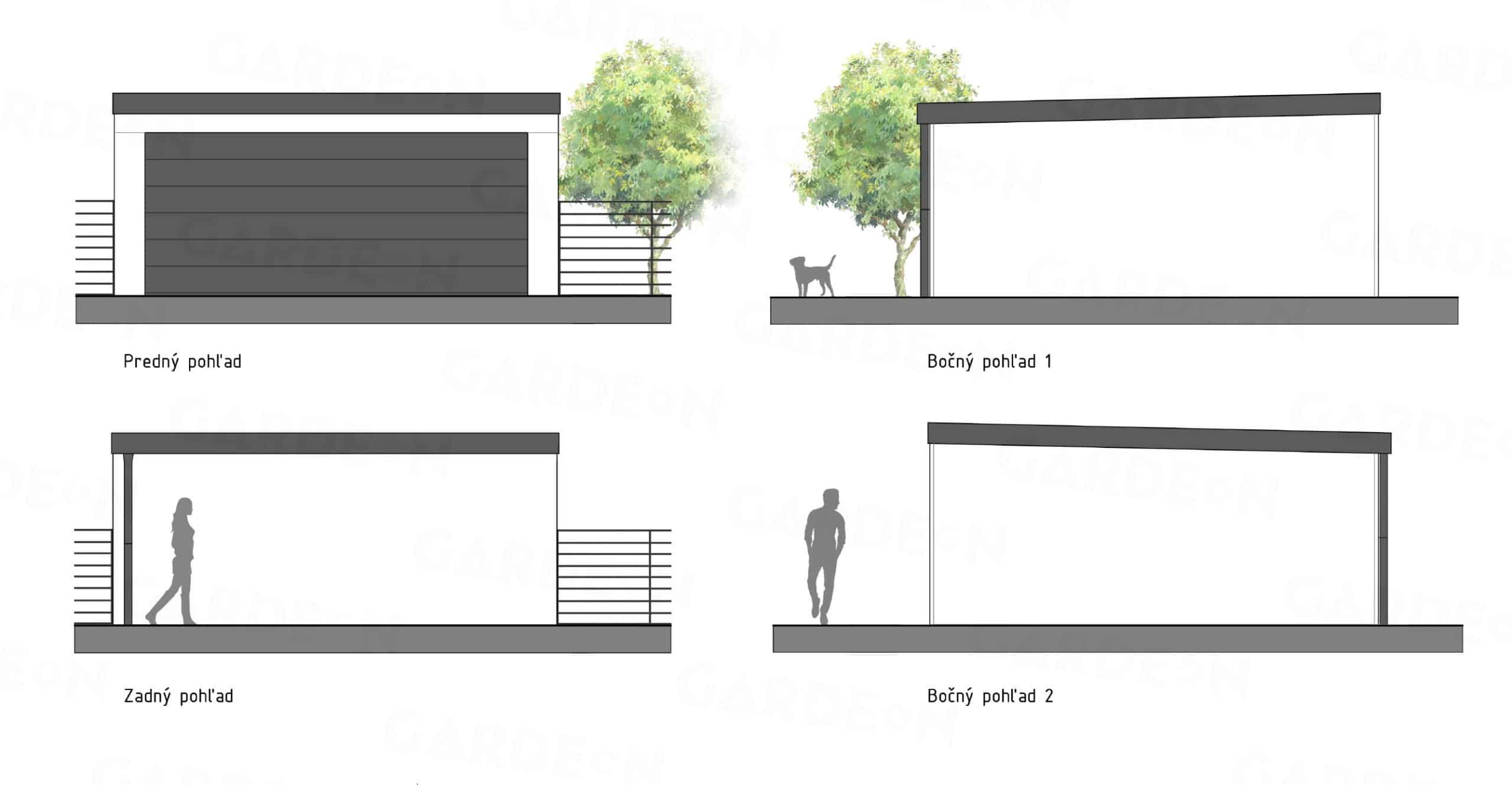 Navyše, v čase keď auto budete parkovať v garáži, môžete prístrešok využívať ako altánok. Vhodná veľkosť garáže aj prístrešku je v tomto prípade rozmer 3100 x 5020 + 3100 x 5020mm.