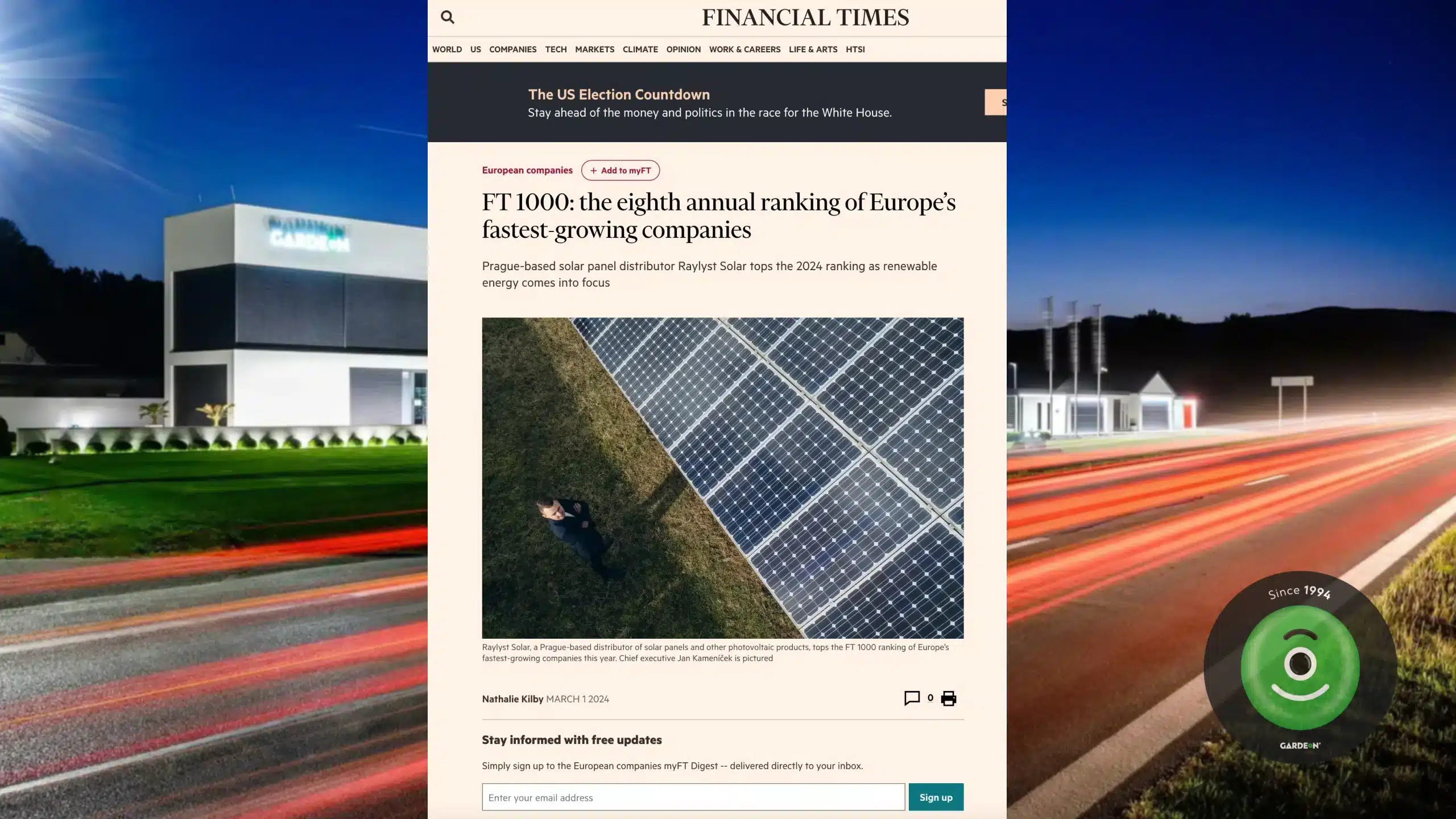 Začiatkom mesiaca nás veľmi potešila správa, že sme sa v prestížnom anglickom periodiku The Financial Times v rubrike „FT 1000 Europe’s Fastest Growing Companies“ umiestnili na 719. mieste. Informácie sú použité z voľne dostupných štatistických zdrojov. Navyše sme museli splniť množstvo podmienok, aby nás zaradili do tohto prestížneho rebríčka, v ktorom sa okrem nás nachádzajú už len 2 firmy zo Slovenska.