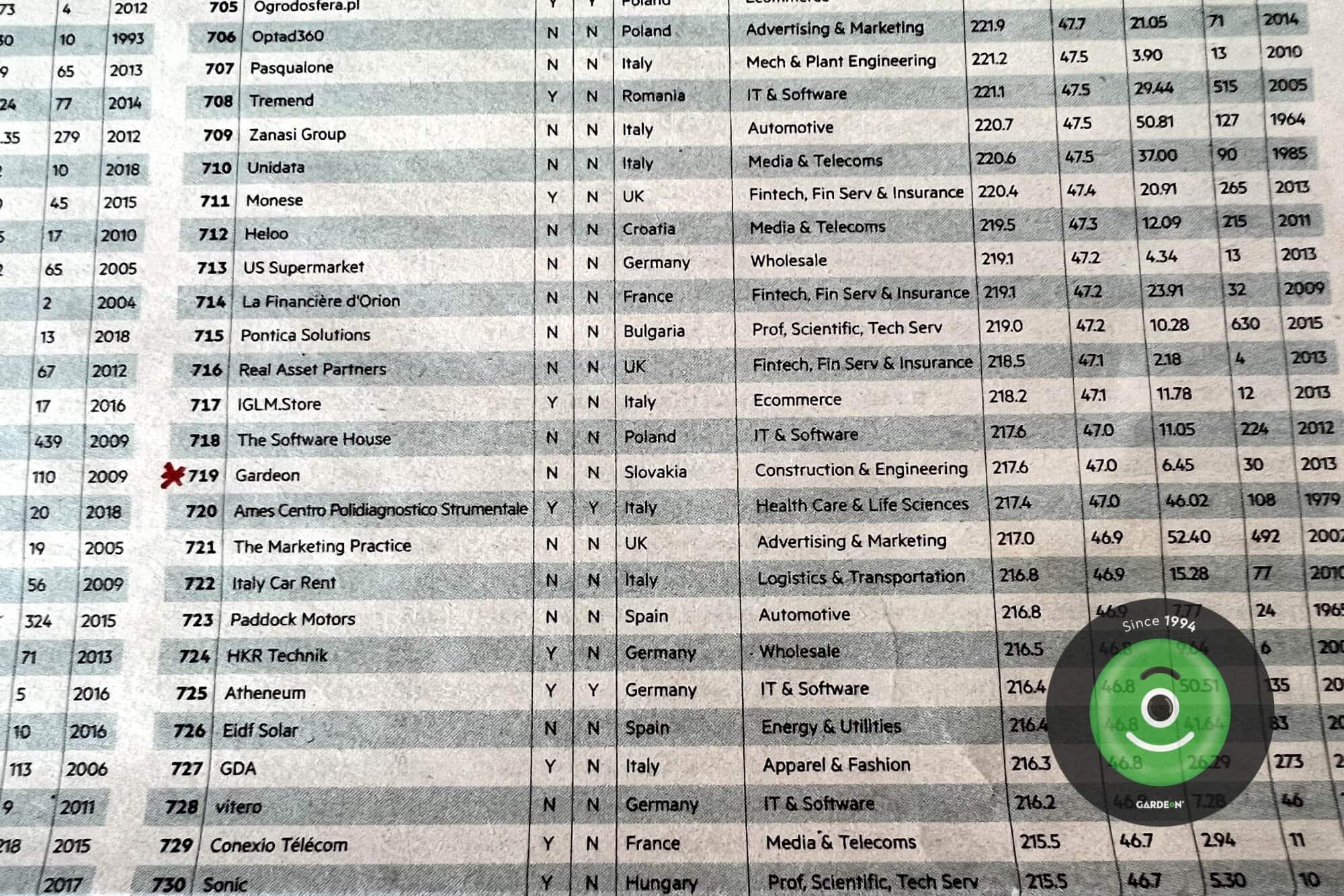 Dosiahnuť významný úspech nebýva ľahké, no obhájiť ho je často ešte ťažšie. Nám sa to podarilo! Už po druhý raz za sebou sa GARDEON umiestnil v prestížnom rebríčku najrýchlejšie rastúcich spoločností v Európe, a to v porovnaní s minulým rokom dokonca o viac než 200 priečok vyššie. Pre rodinnú firmu z malej obce na Strednom Slovensku je to priam neuveriteľný triumf.