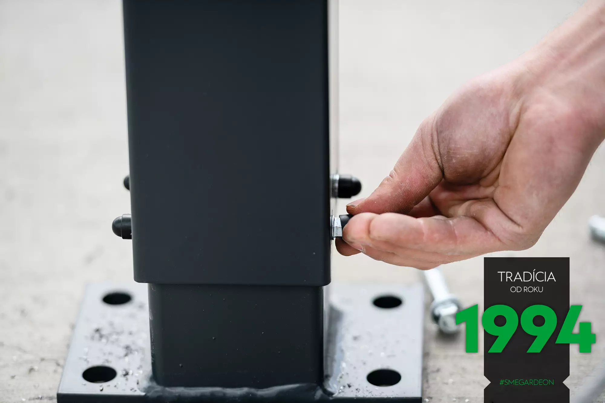 Na betónové základy sa najskôr upevnia kotviace pätky (tzv. papuče) z pozinkovanej ocele.
