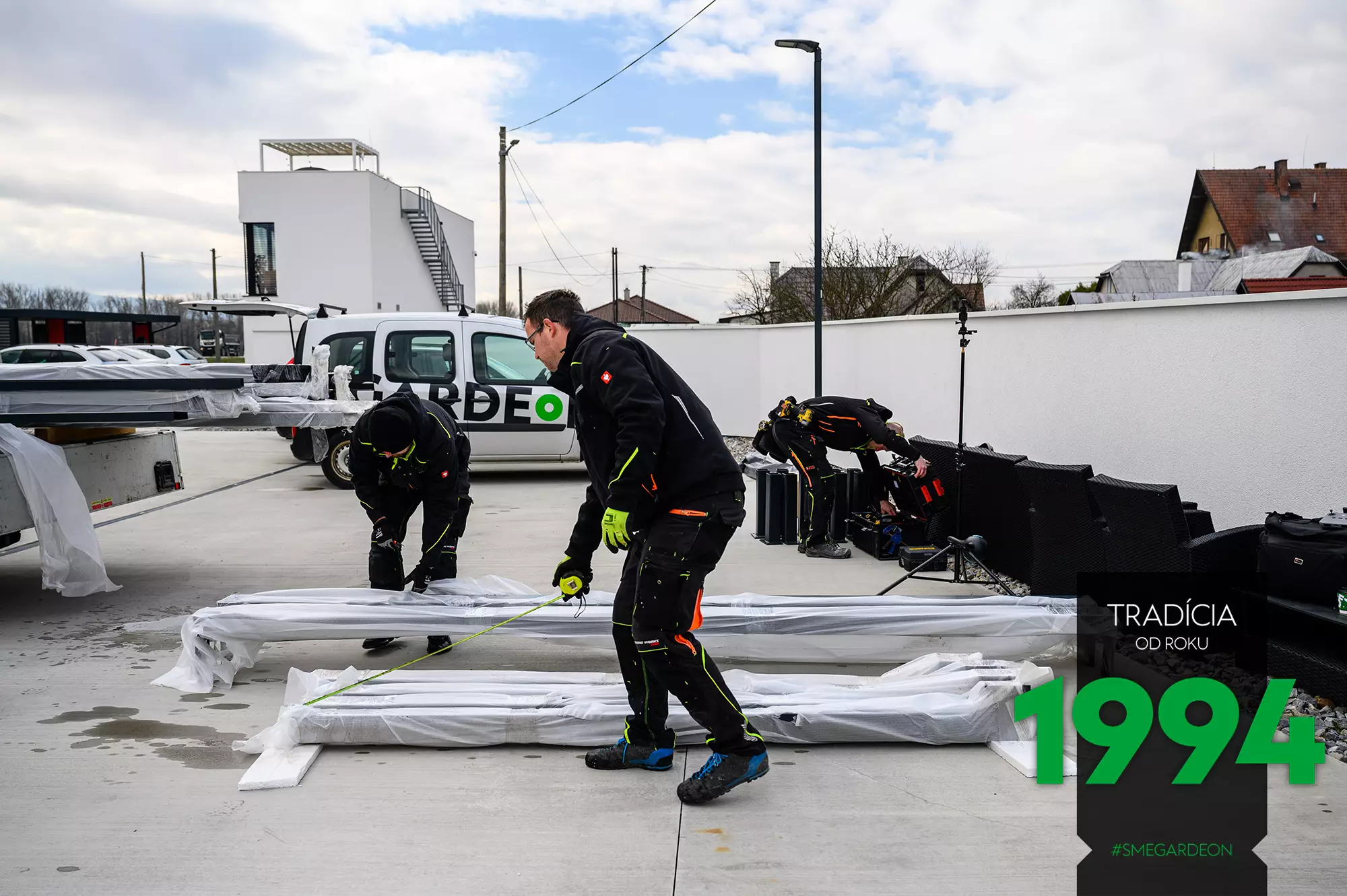 Nepotrebujeme dokonca ani elektrickú prípojku, keďže pracujeme s profesionálnym akumulátorovým náradím. V dohodnutom termíne k vám domov dovezieme všetky potrebné komponenty aj spojovací materiál a naši vyškolení montážnici vám za pár hodín postavia elegantnú a praktickú novú pergolu.