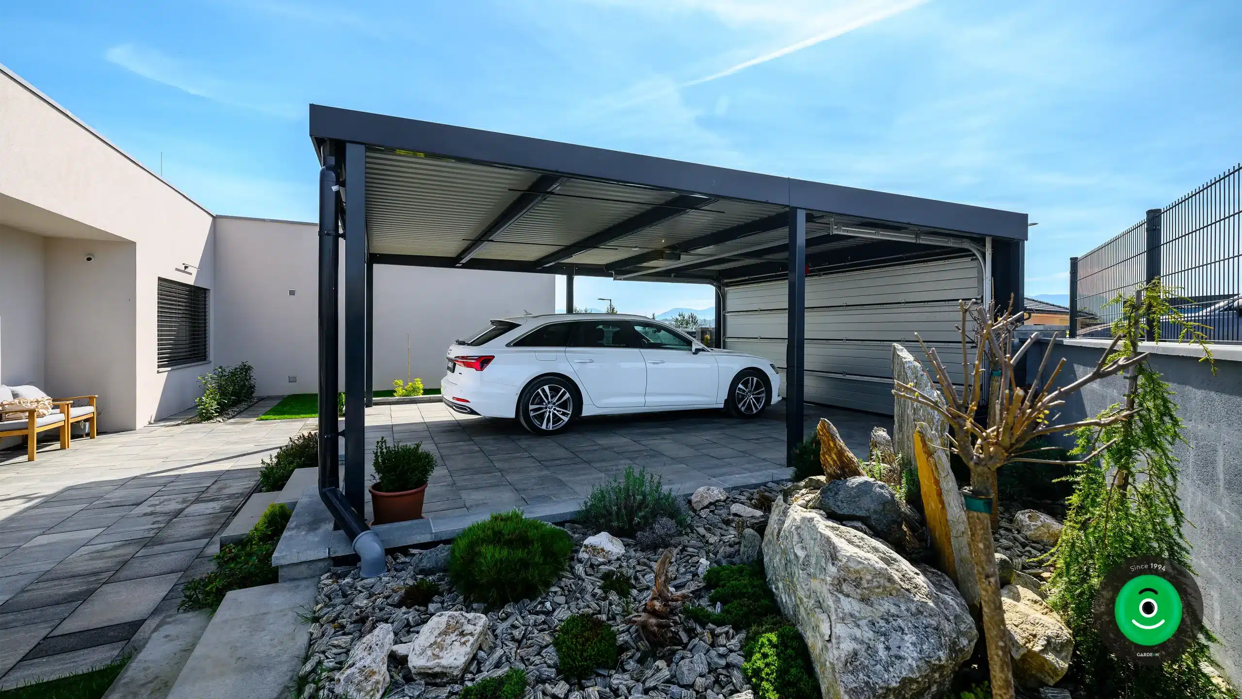 Nemáte na pozemku miesta nazvyš a priestor, ktorý je k dispozícii, chcete využiť efektívne? Ideálnym riešením môže byť prístrešok pre auto pred domom, prípadne vedľa domu umiestnený tak, aby bol presne na hranici pozemku. Výhodou prístrešku je totiž vzdušná konštrukcia, ktorá na hranici pozemku môže bez problémov stáť, navyše priestor pred domom alebo vedľa domu nebude s prístreškom pôsobiť príliš stiesnene či zapratane. A ak si zvolíte prístrešok GARDEON s garážovou bránou získate parkovacie miesto, ktoré je svojou bezpečnosťou porovnateľné s garážou, avšak za výhodnejšiu cenu. Garážová brána na prístrešku pritom môže slúžiť aj na zabezpečenie vstupu na pozemok, čím účelne využijete daný priestor a ušetríte ďalšie financie.