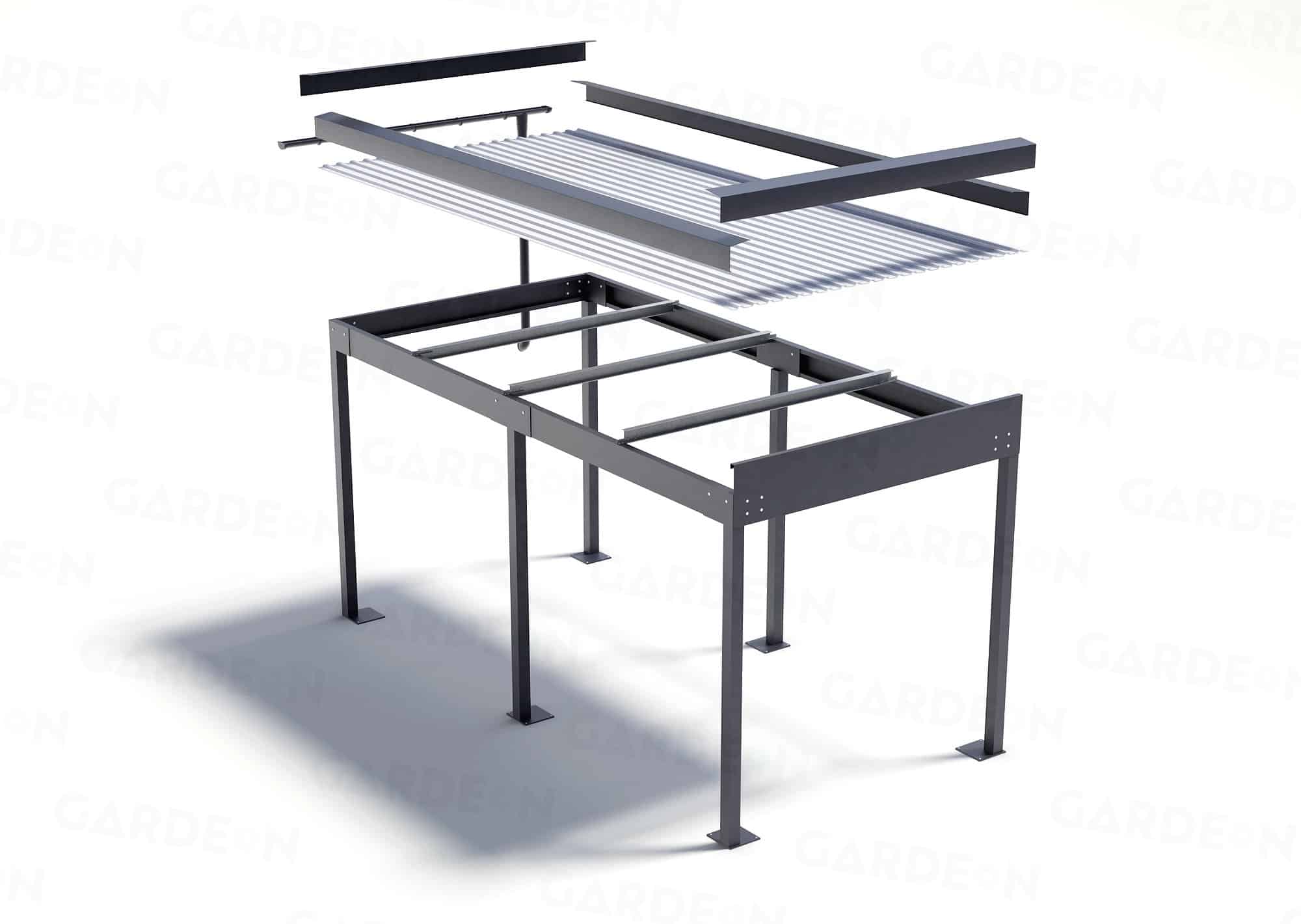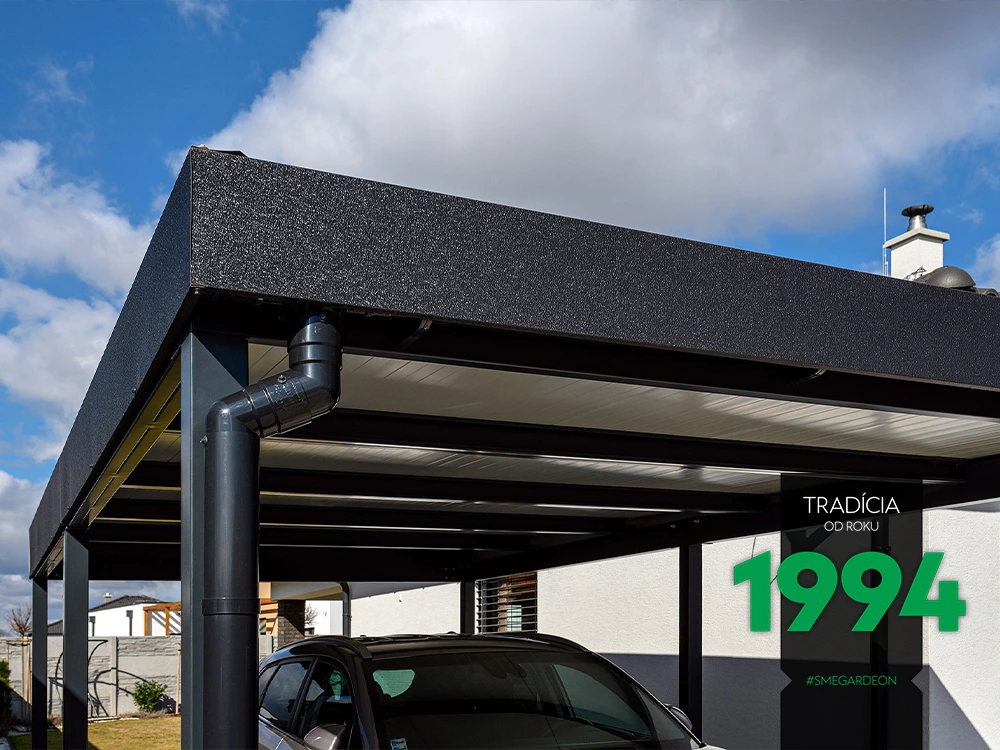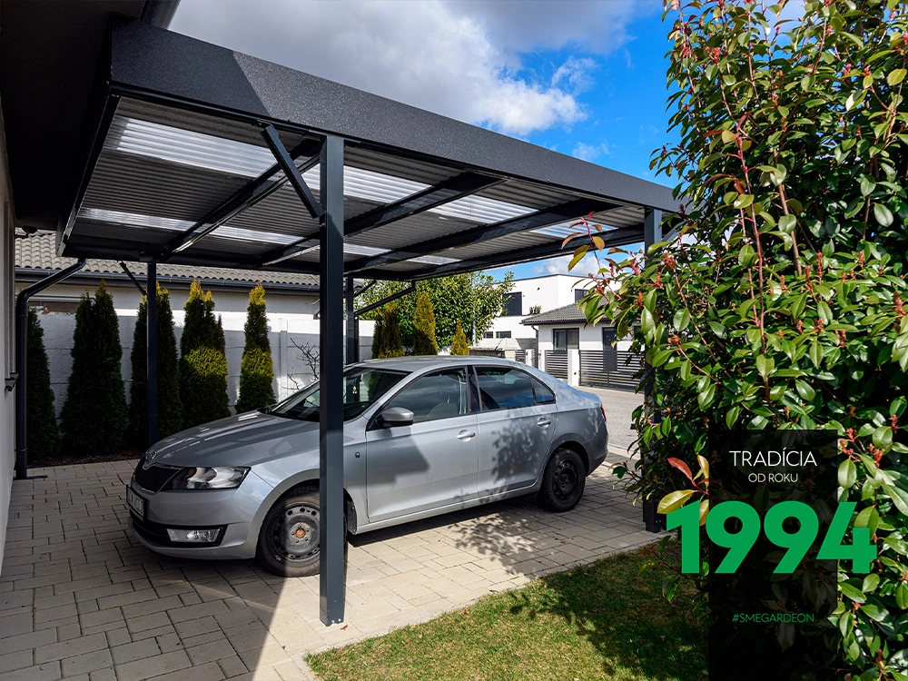 V našej ponuke nájdete prístrešky – GARDEON. Základom je montovaná konštrukcia z kvalitnej ocele, ktorej dodáva extrémne dlhú životnosť špeciálne pozinkovanie (žiarové). Takáto povrchová úprava vydrží až 5x dlhšie ako je bežné. Úplne pozinkovaná konštrukcia sa ešte vo výrobe farebne upravuje. Tým sa zabezpečí vysoká odolnosť povrchovej vrstvy a prístrešky si tak nevyžadujú žiadny ďalší náter.