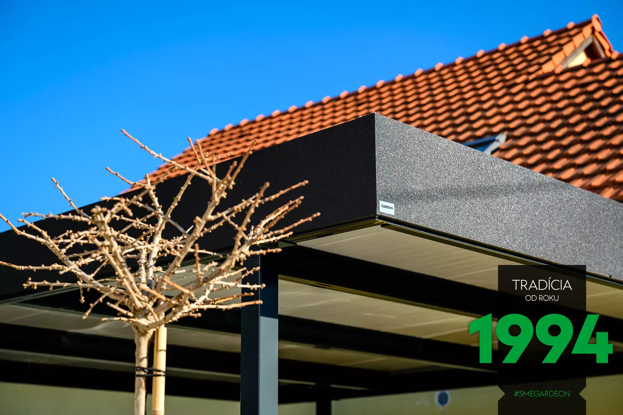 Výplne prístreškov GARDEON tvorí trendové vodorovné kovové latovanie v štyroch farebných prevedeniach (biela, hnedá, antracitová, biely hliník). Prístrešok tak možno pekne zladiť napríklad s obložením fasády domu.