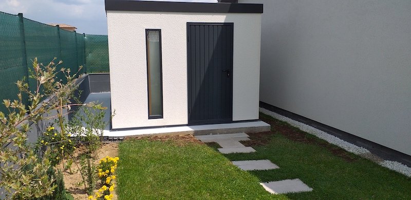 Pán Krnáč nás oslovil v marci roku 2018 s tým, že potrebuje záhradný domček na odkladanie záhradných potrieb ako je napríklad kosačka, hrable, sezónne veci… Doma už mal postavenú montovanú garáž, takže technológiu poznal a s výsledkom je spokojný. Ako podklad pripravil betónovú platňu, na ktorú sa následne záhradný domček zmontoval.
