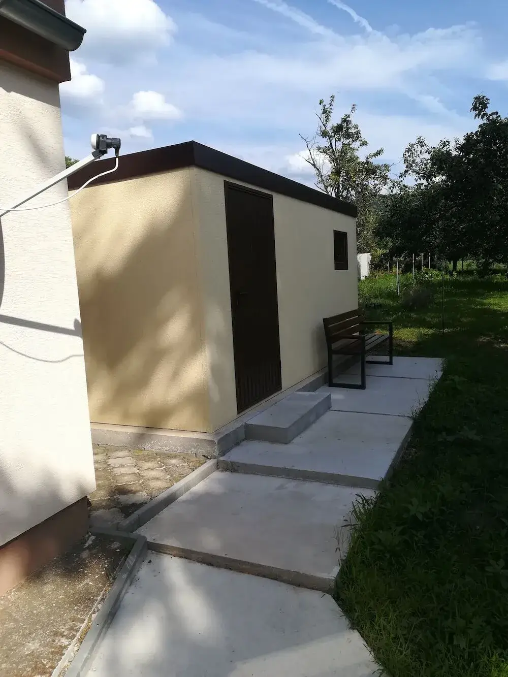 ,,Ja mám od vás záhradný domček o rozmeroch 5000 x 4010 mm. Presne niečo také som hľadal. Mám tam aj pracovný stôl so zverakom (ponk), kosačku, krovinorez, zimné pneumatiky, rebríky, sudy na kvas, dva bicykle a iné veci. Som spokojný. Iba jednu vec som si objednal zle. Počas užívania domčeka som zistil, že odtok odpadovej vody som nemal dať vľavo, ale vpravo. Pokiaľ by vaši pracovníci mali niekedy cestu smerom na Topoľčany, uvítal by som ich návštevu u mňa, aby sa pozreli na to, či by sa to dalo upraviť. Ďakujem za spoluprácu, som veľmi spokojný.“