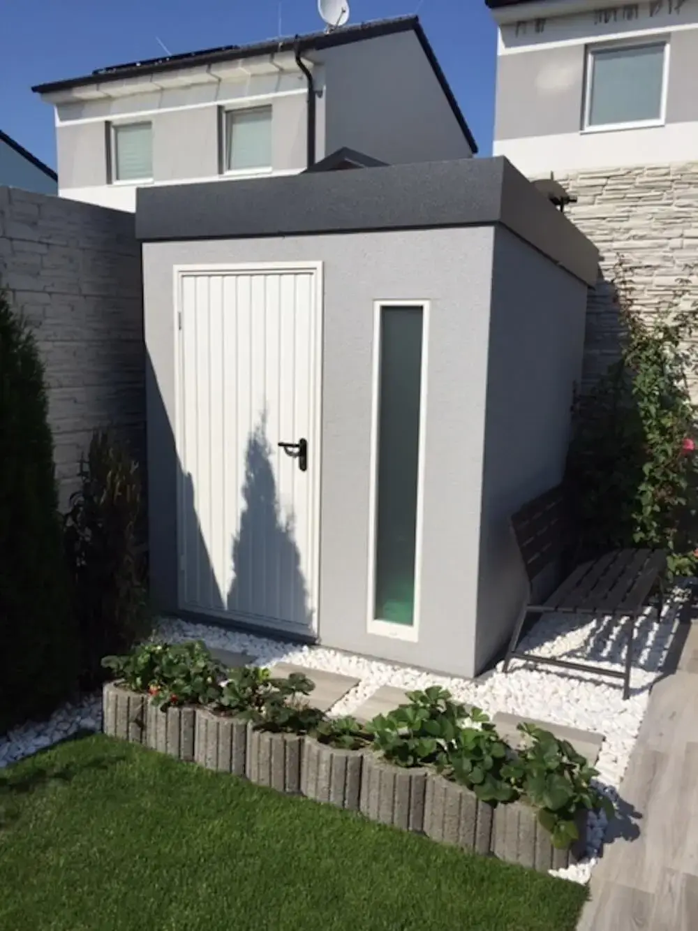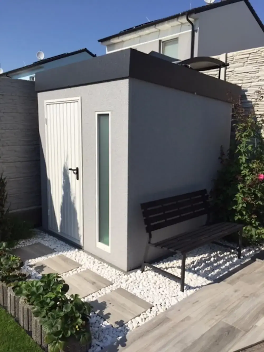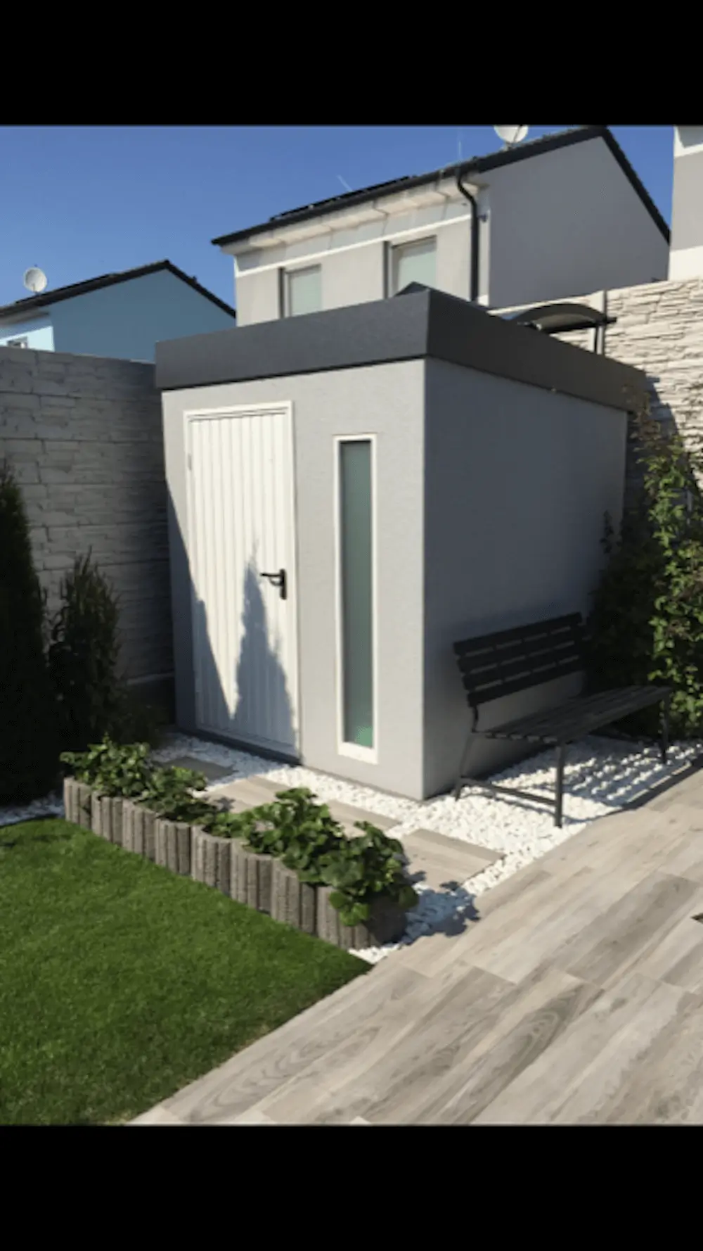 Pani Štěpánková nás prvýkrát oslovila v auguste roku 2017. Počase sa nám v septembri roku 2019 znovu ozvala s tým, že by chcela záhradný domček. Riešili sme spoločne prenos stien a navrhovali vhodné riešenia. Domček sme namontovali v marci roku 2020.