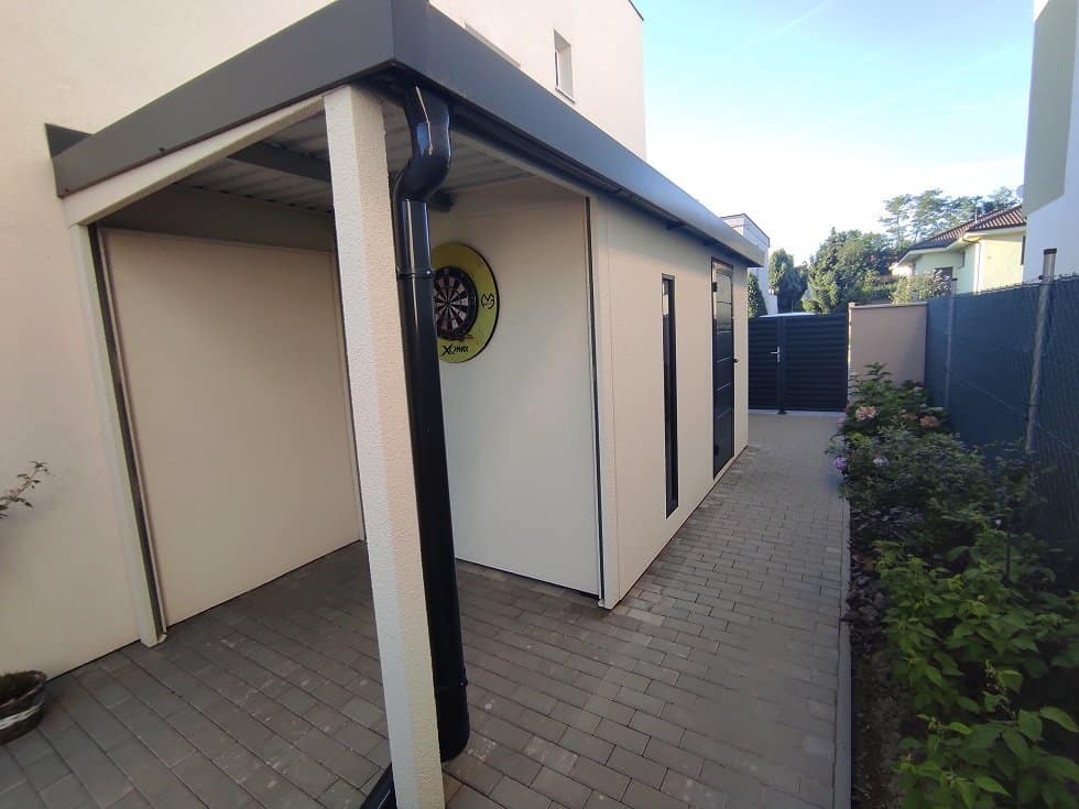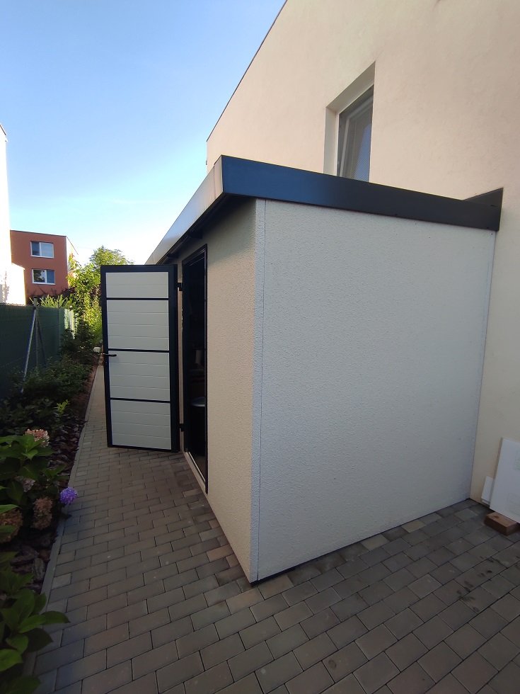 Pán Majzlík nás v júli roku 2018 oslovil s tým, že by chcel zrealizovať záhradný domček, ktorý chce oprieť tesne o dom. Po vzájomnej konzultácií a následnej objednávke (doba dodania sú 3 mesiace) sme domček namontovali vo februári 2019.