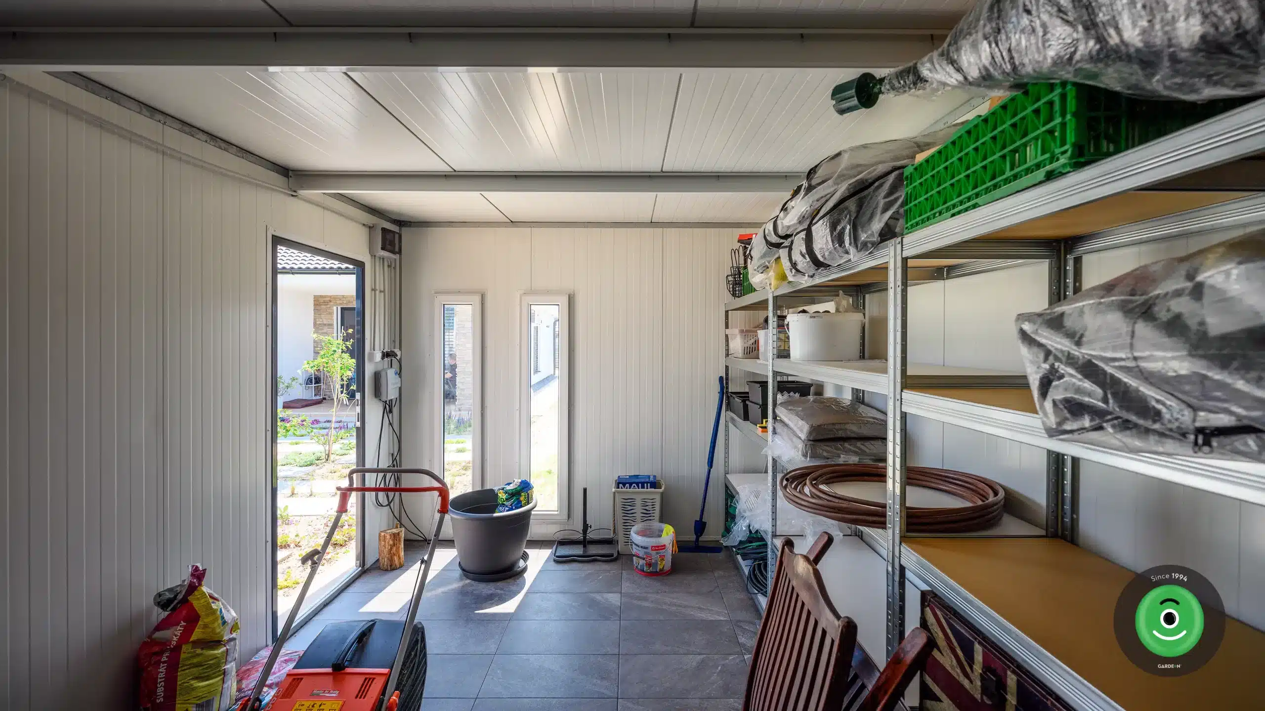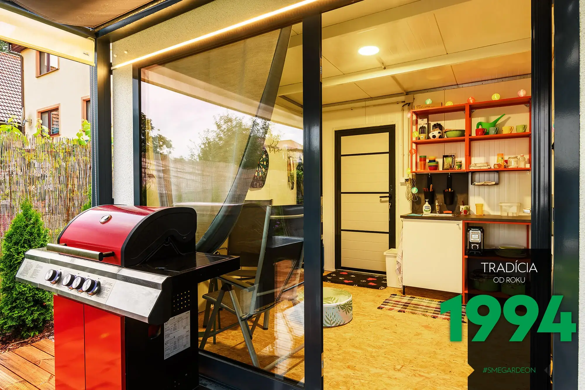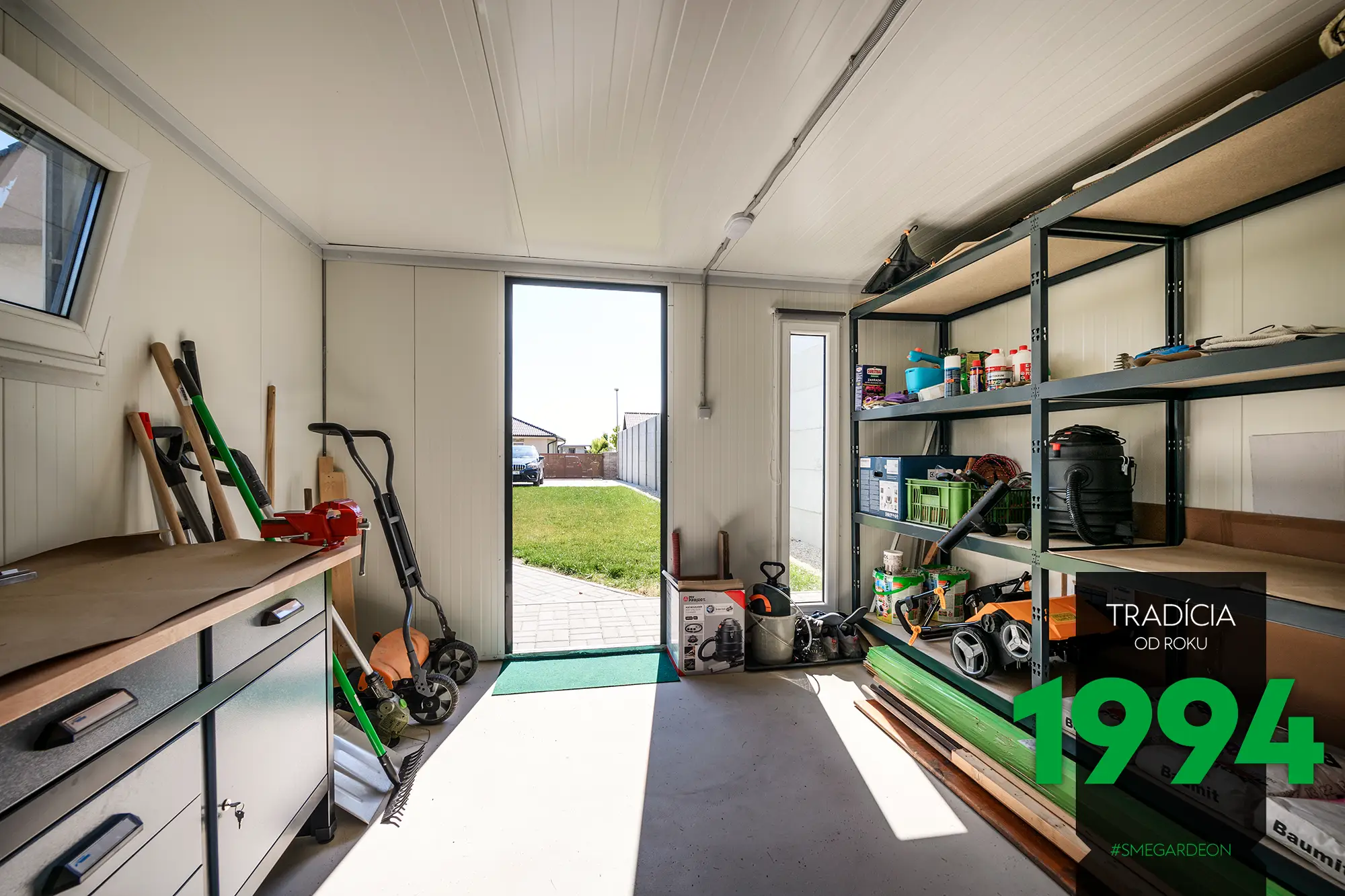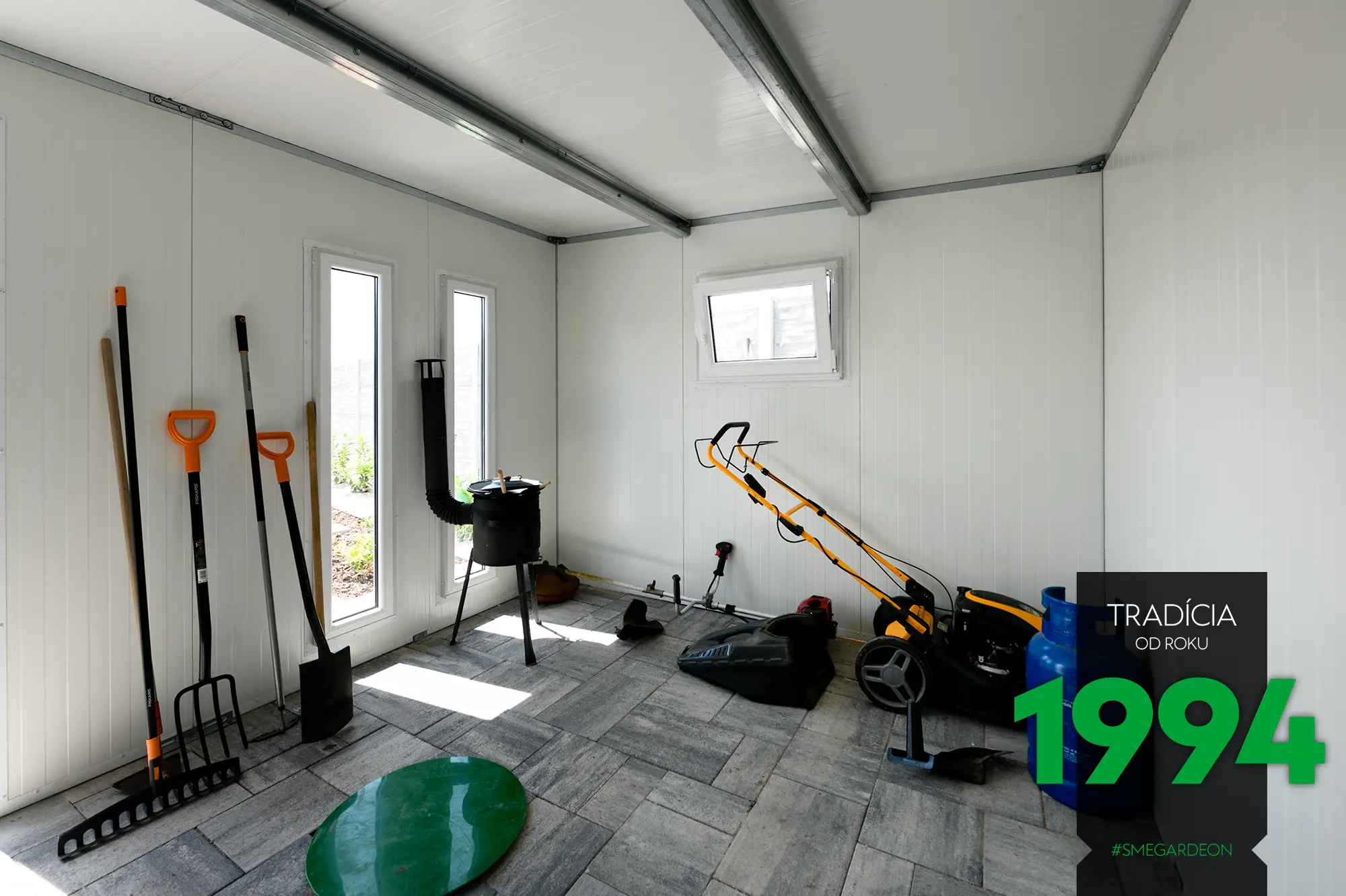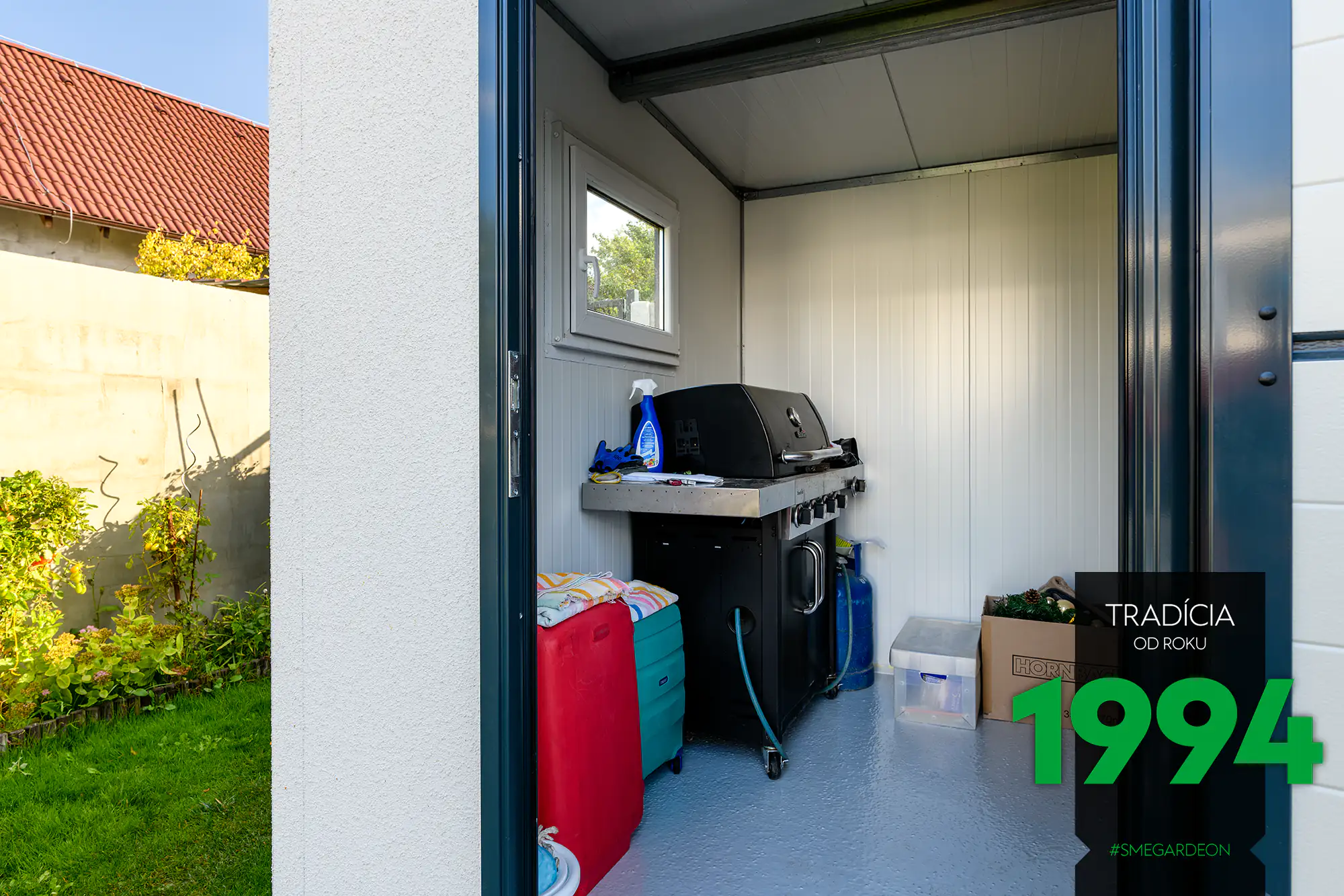 Základom tejto modernej konštrukcie je novinka v našej ponuke, izolované steny Gardeon Thermopanel 50, ktoré zdokonaľujú náš systém montovaných záhradných domčekov.