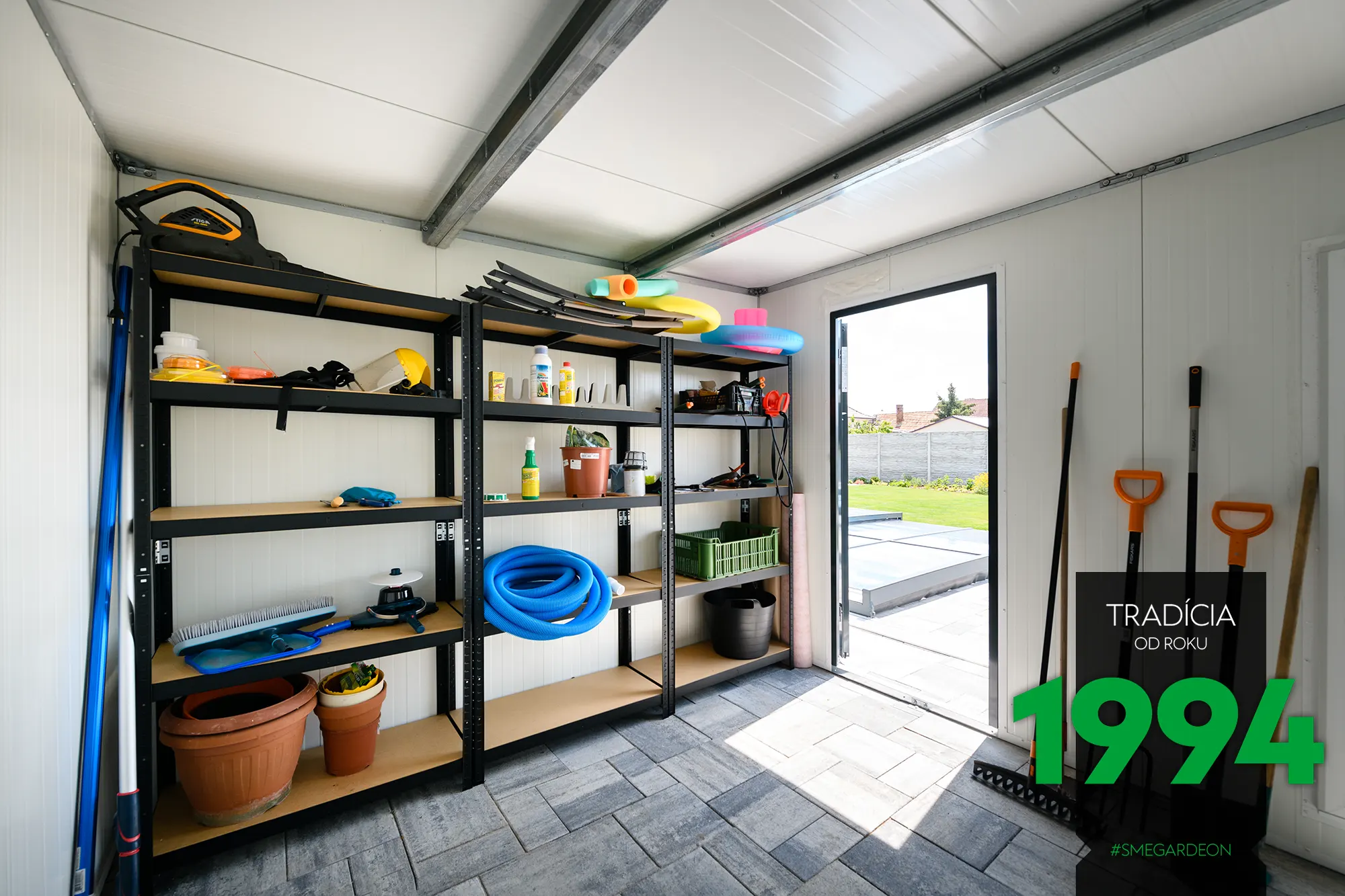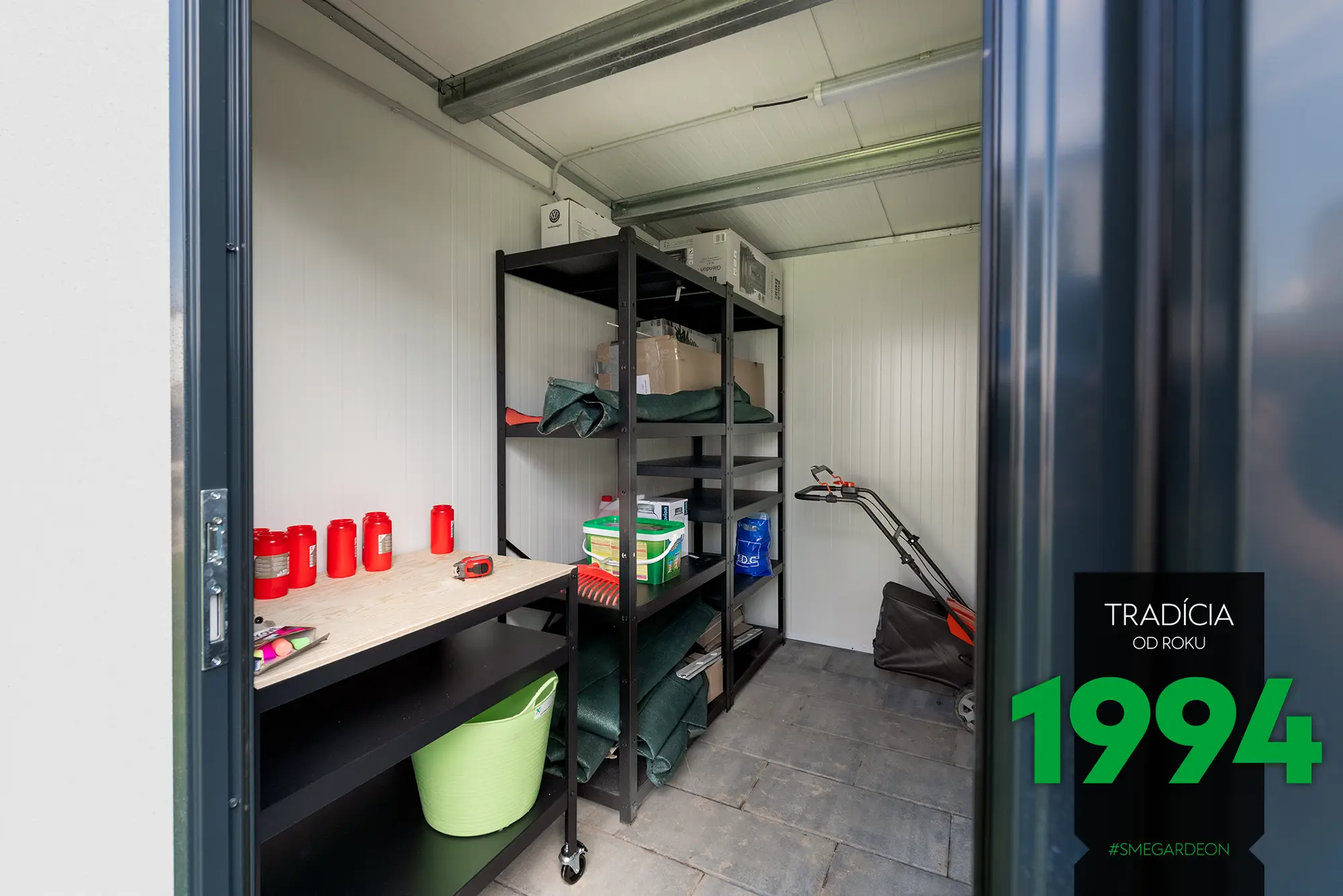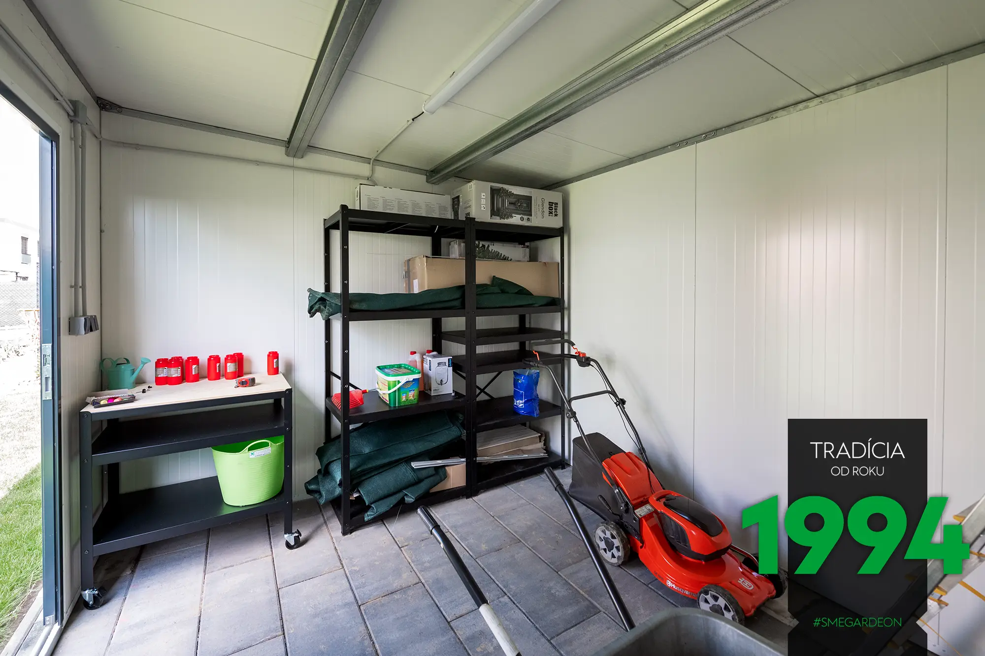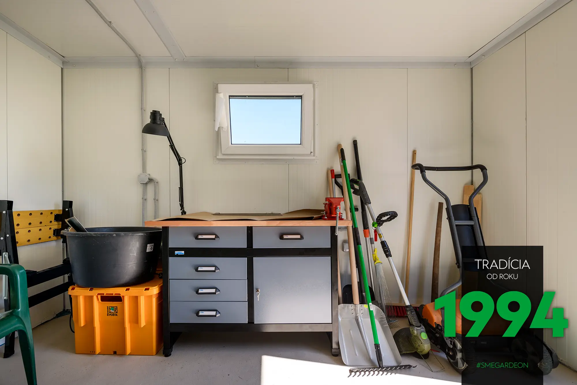 Základom tejto modernej konštrukcie je novinka v našej ponuke, izolované steny Gardeon Thermopanel 50, ktoré zdokonaľujú náš systém montovaných záhradných domčekov.