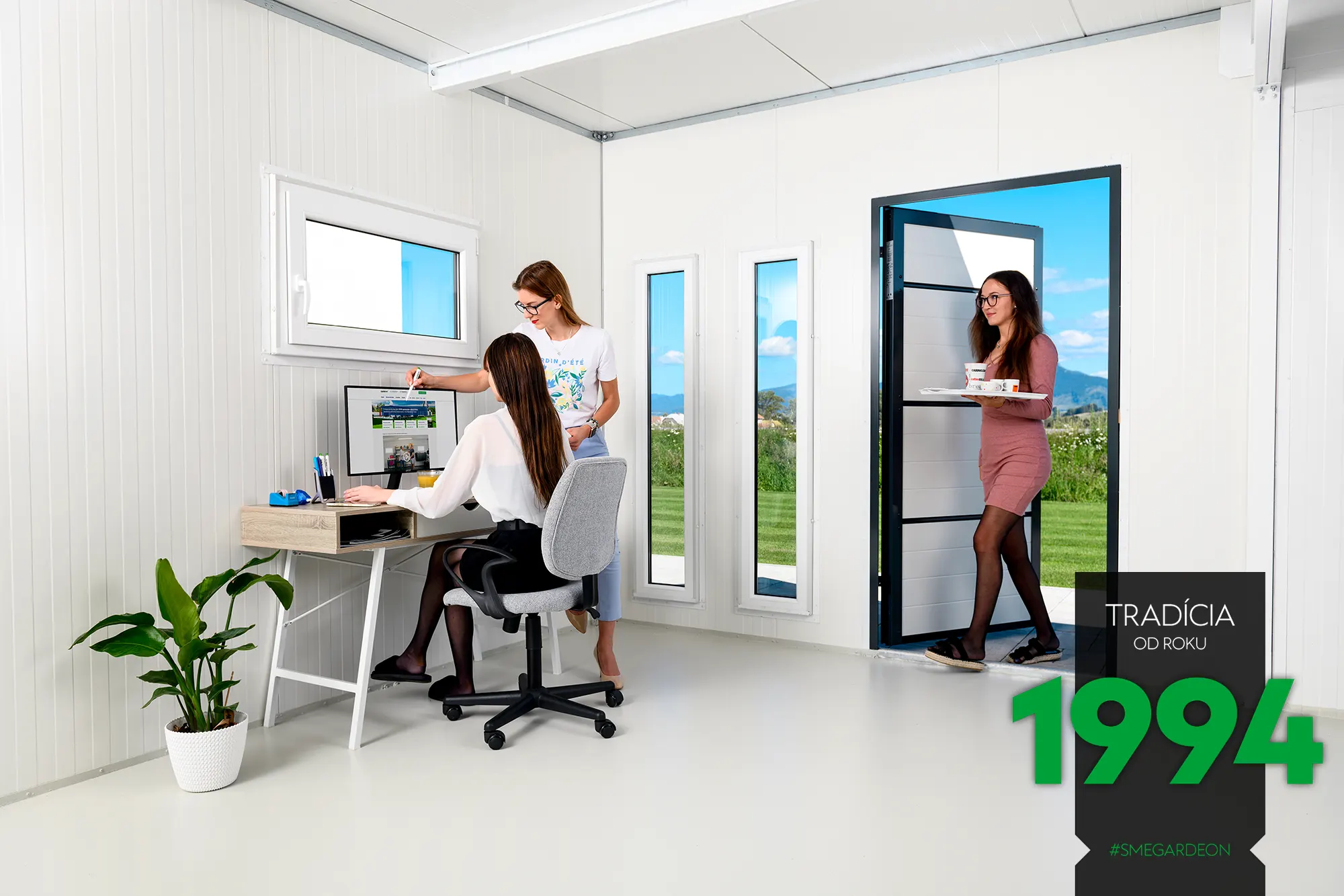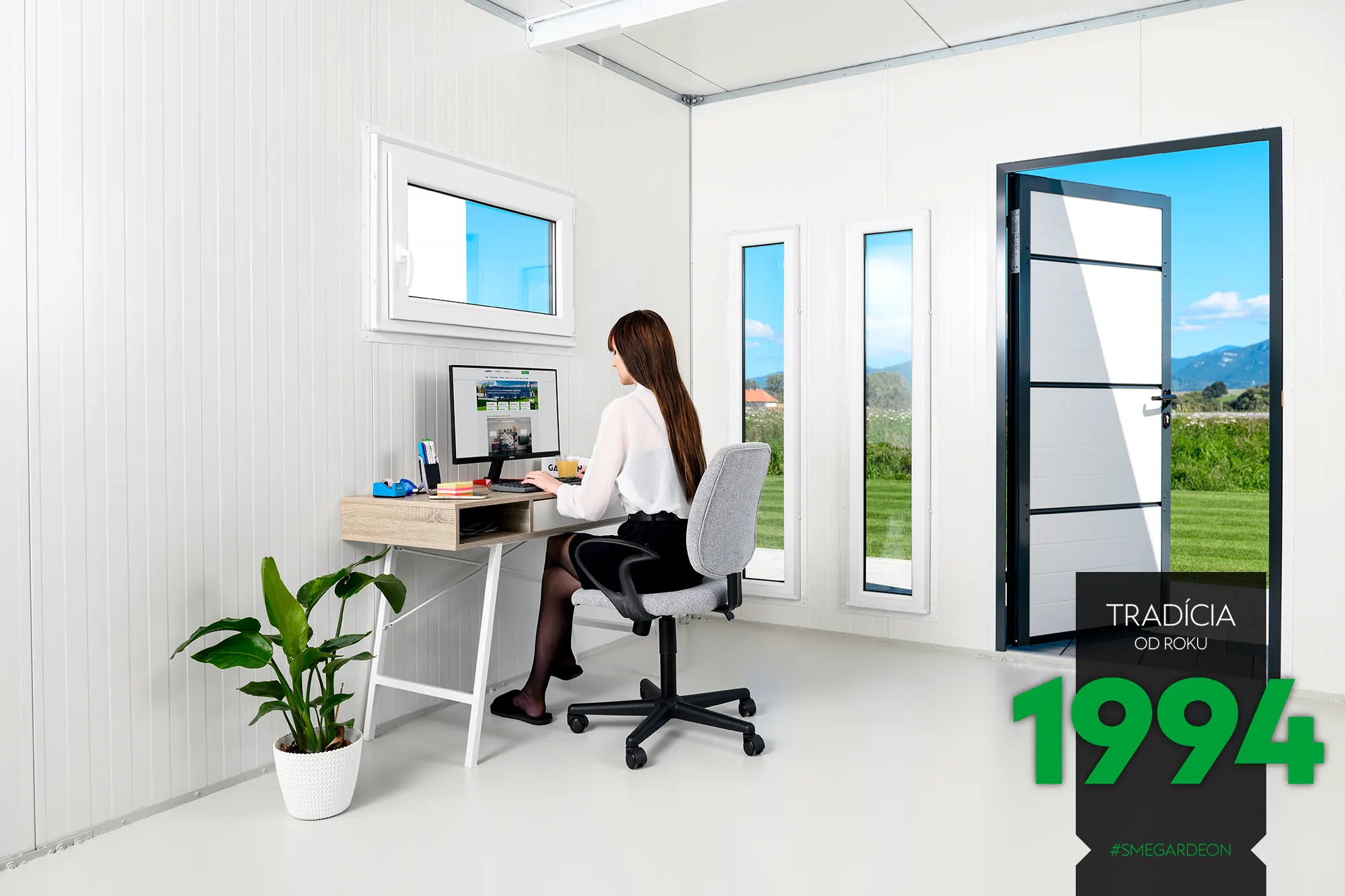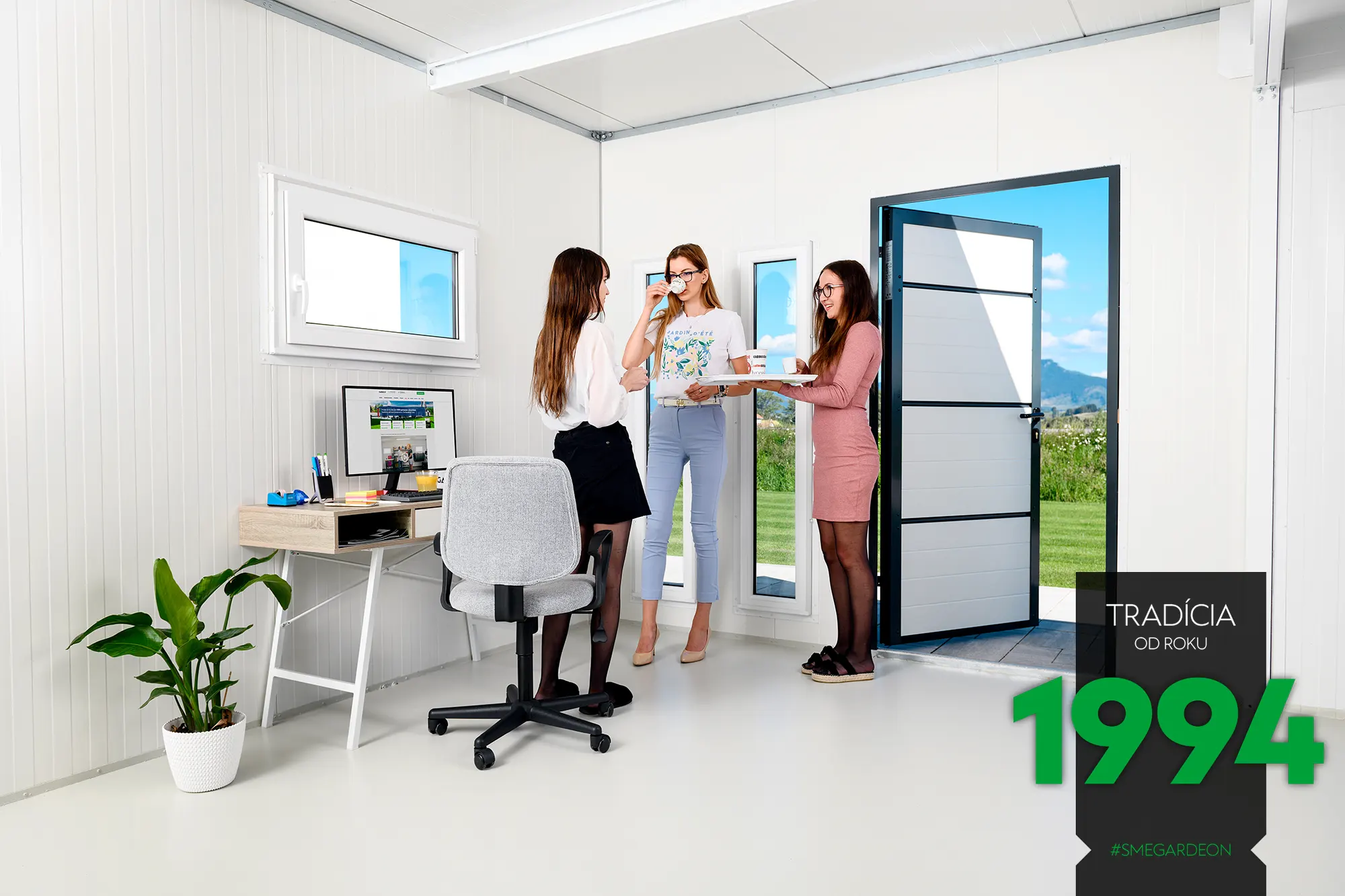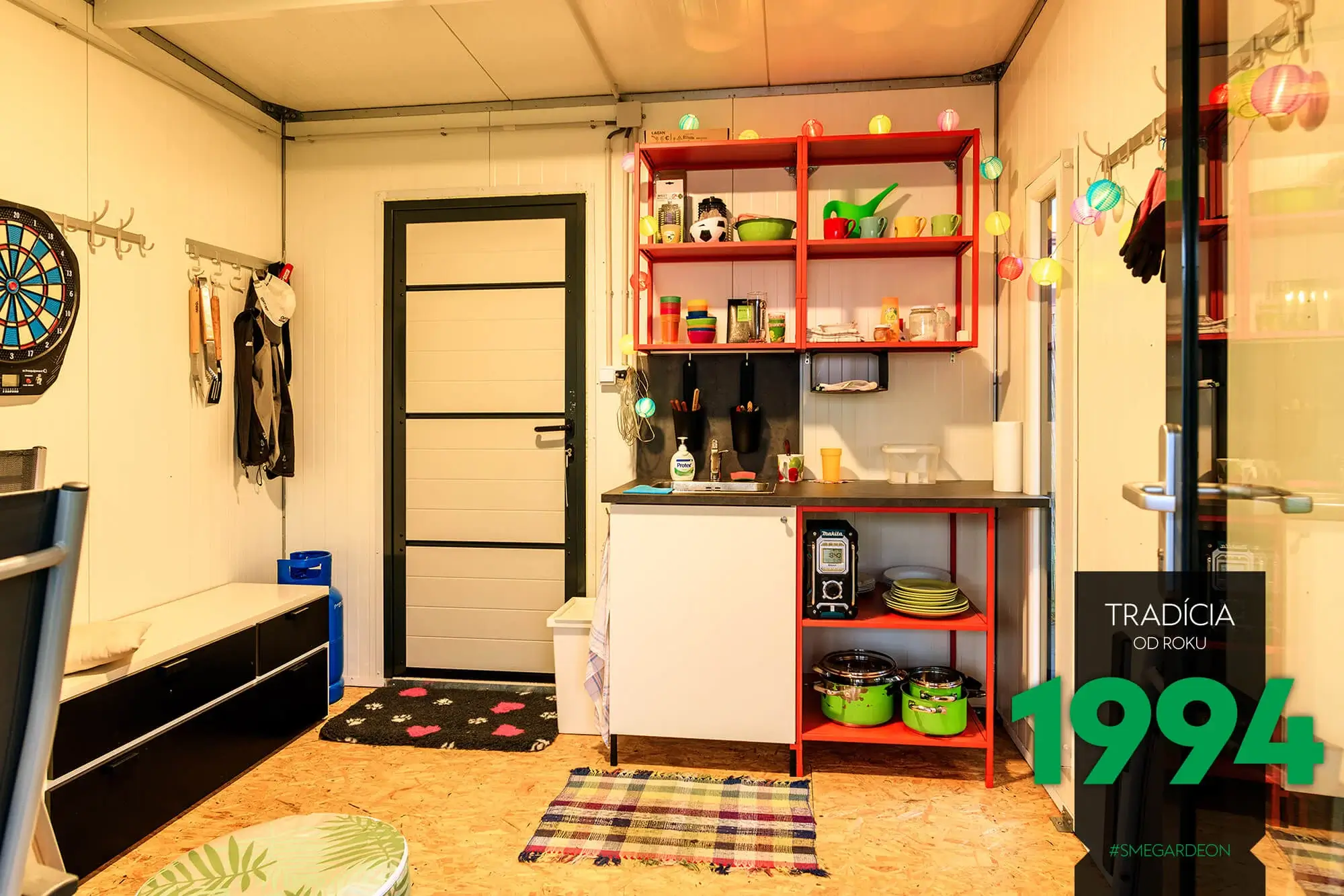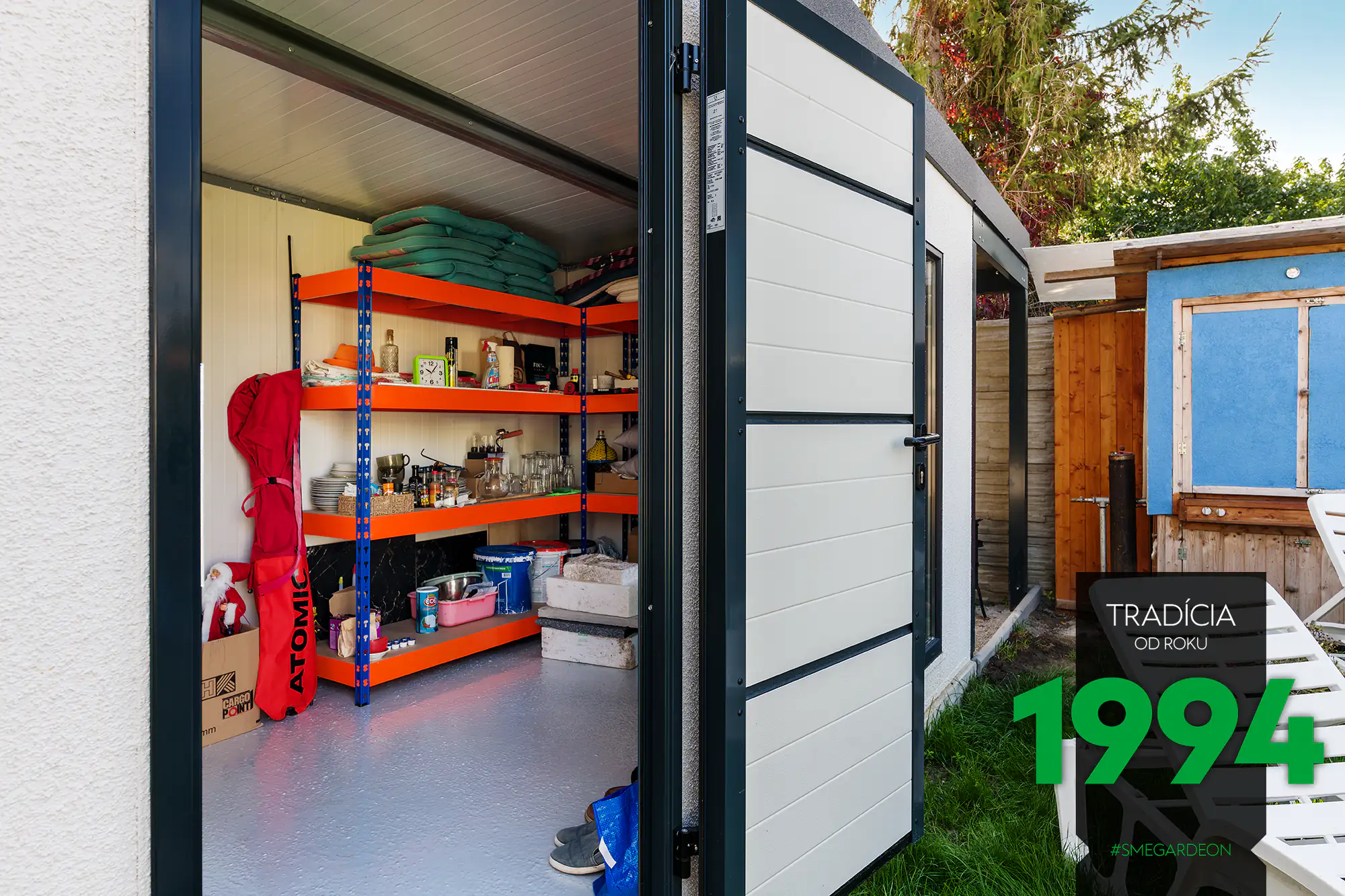 Základom tejto modernej konštrukcie je novinka v našej ponuke, izolované steny Gardeon Thermopanel 50, ktoré zdokonaľujú náš systém montovaných záhradných domčekov.