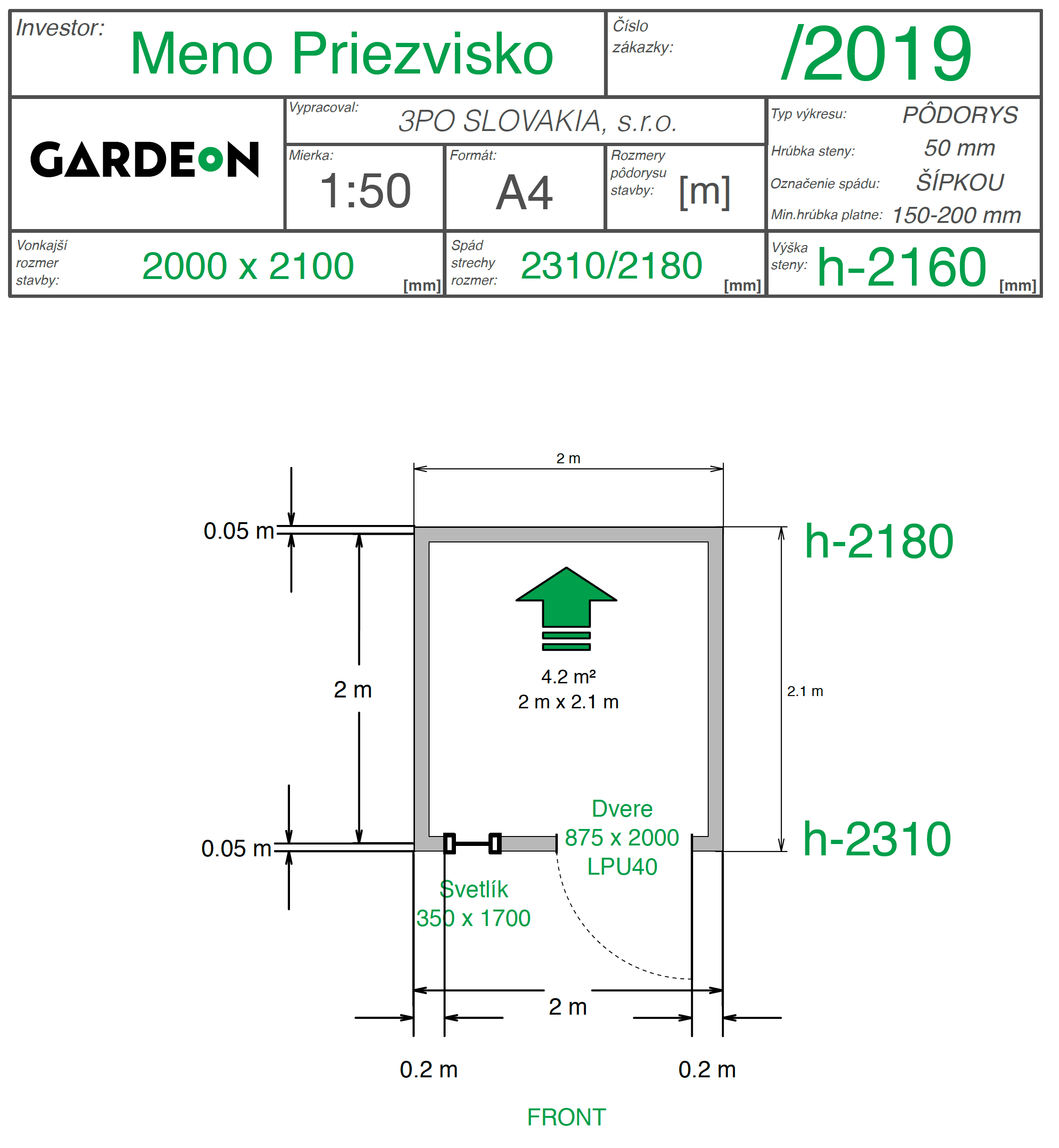 Ak bude záhradná stavba slúžiť len ako sklad náradia, prípadne domček pre deti, postačia vám aj najmenšie štandardné rozmery 2 000 x 2 100 mm.