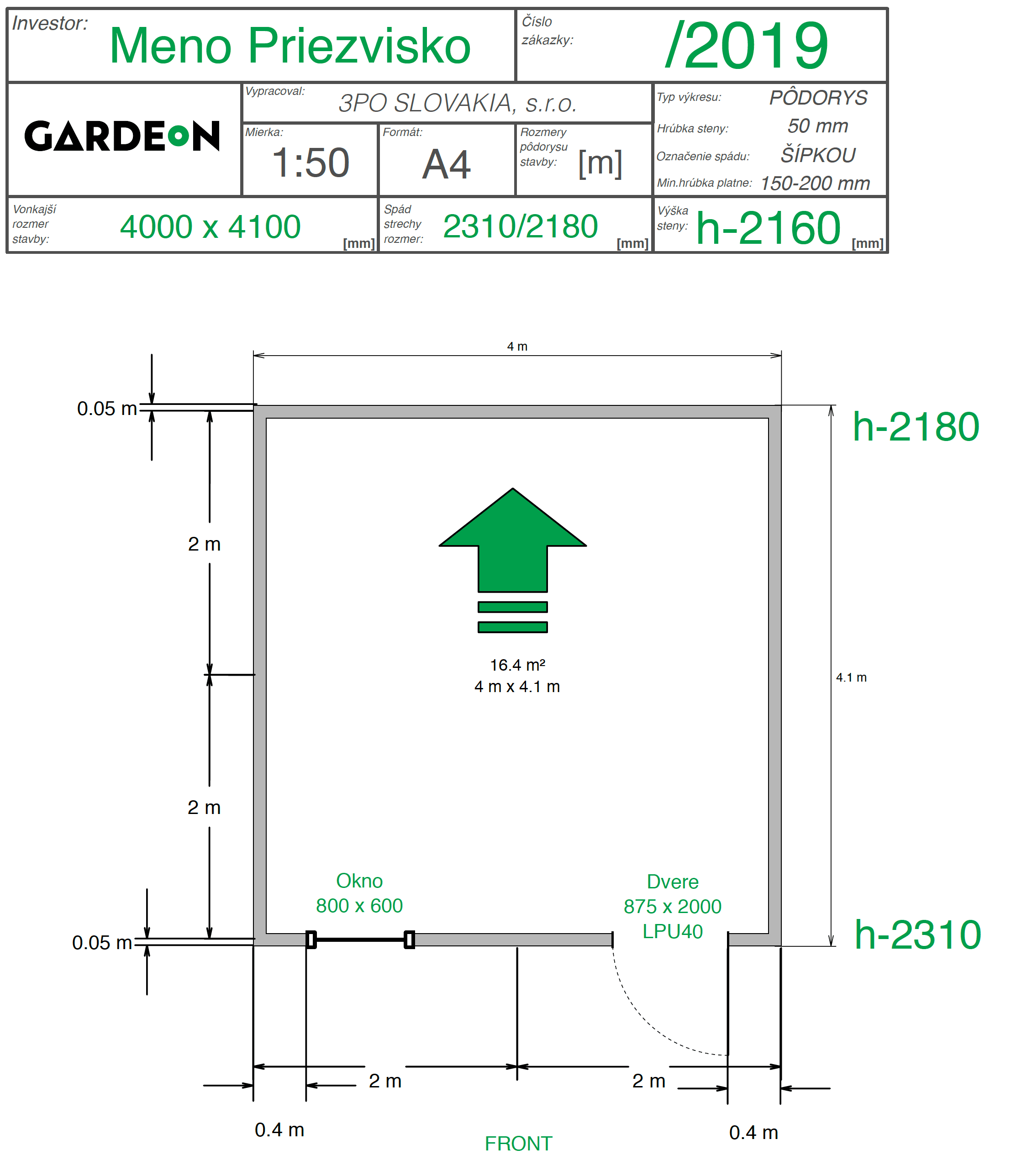 Väčšie rozmery si vyžaduje napríklad letná kuchyňa, domáca dielňa, pracovňa či umelecký ateliér. Naozaj veľkorysý priestor na akékoľvek účely získate v montovanom domčeku s pôdorysom 4 000 x 4 100 mm.