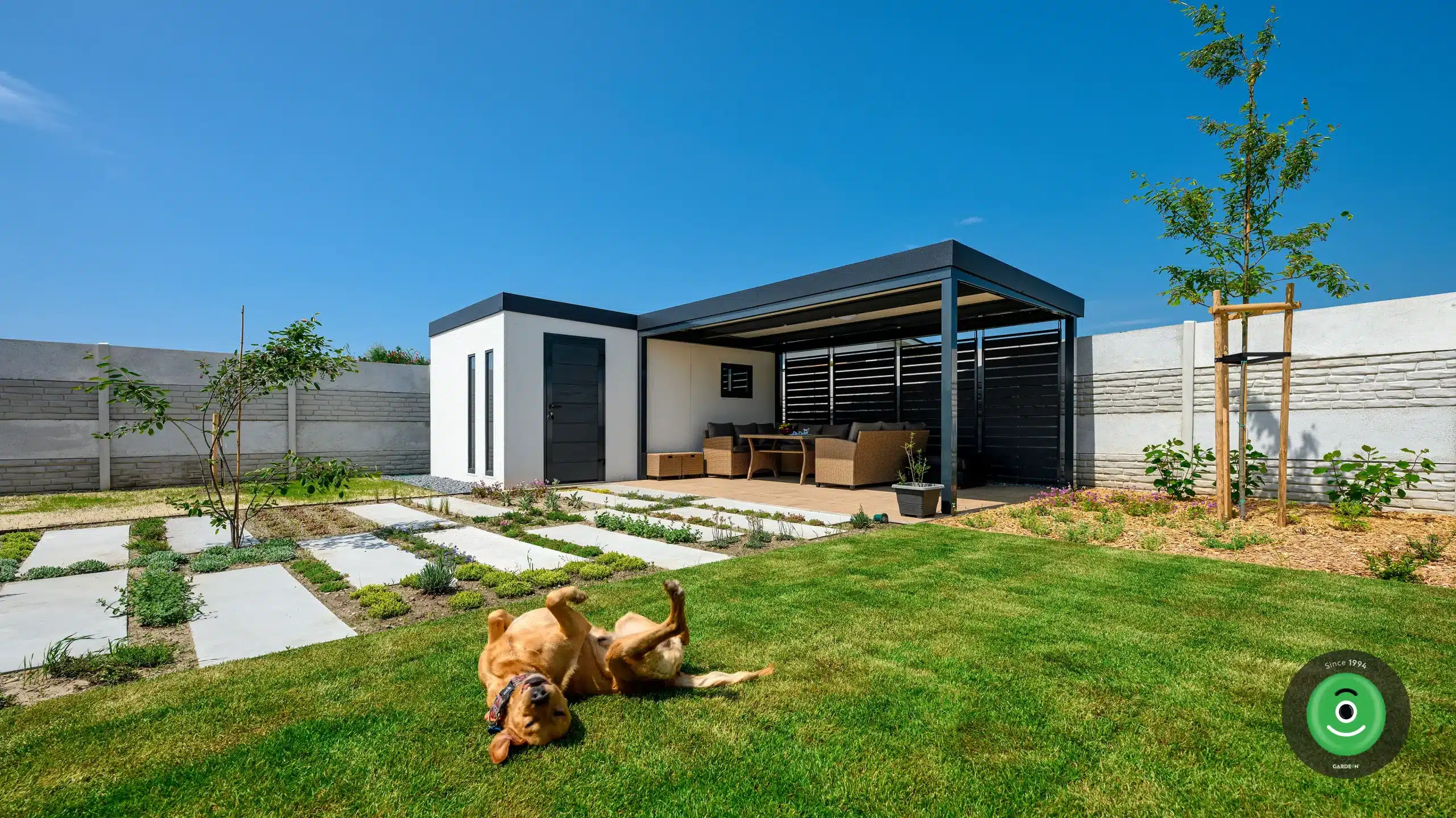 Záhradná stavba do tvaru L